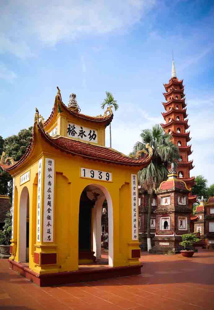 นอกจากนี้ยังมีป้อมปราการจักรพรรดิแห่งทังลองที่ทาอาคารและรั้วด้วยสีเหลือง มีโรงละครโอเปร่า ฮานอย อาคารของกระทรวงการต่างประเทศ เน้นสีเหลืองสดเด่น ไม่เว้นแม้แต่ในวัดก็ยังมีสถาปัตยกรรมเน้นสีเหลือง อย่างที่เจดีย์เจิ่นกว๊อก (Chua Tran Quoc) เจดีย์ที่เก่าแก่ที่สุดในเวียดนาม มีความสูงกว่า 10 ชั้น เป็นงานศิลปะผสมของจีน เวียดนามและญี่ปุ่น