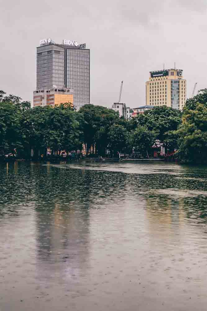 ทะเลสาบคืนดาบหรือว่าทะเลสาบฮว่านเกี๋ยมตั้งอยู่ใจกลางเมืองครับ เป็นแลนด์มาร์คที่สำคัญของฮานอยไปเสียแล้ว เพราะว่าในช่วงวันหยุดจะมีการปิดถนนให้ผู้คนมาทำกิจกรรมที่หลากหลาย บ้างก็พาครอบครัว พาลูกพาหลานมาเดินเล่น หรือจะมาดูกลุ่มวัยรุ่นเค้าเต้นสตรีทแดนซ์ รวมไปถึงมีศิลปินมาเปิดการแสดงต่างๆ โดยรอบทะเลสาบคืนดาบครับ
