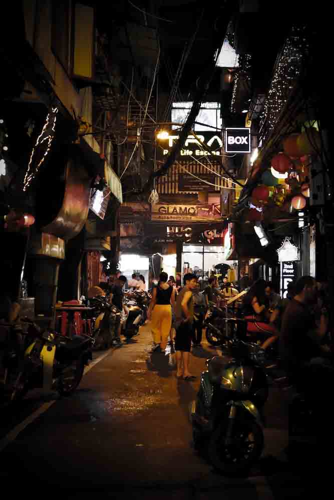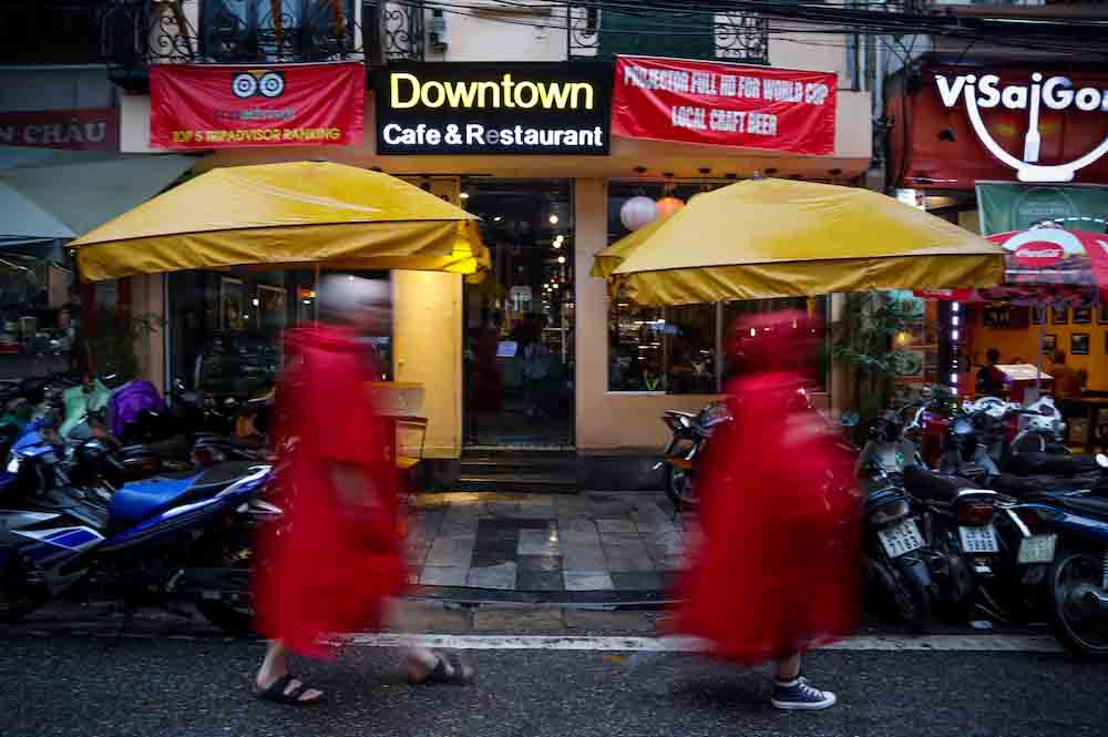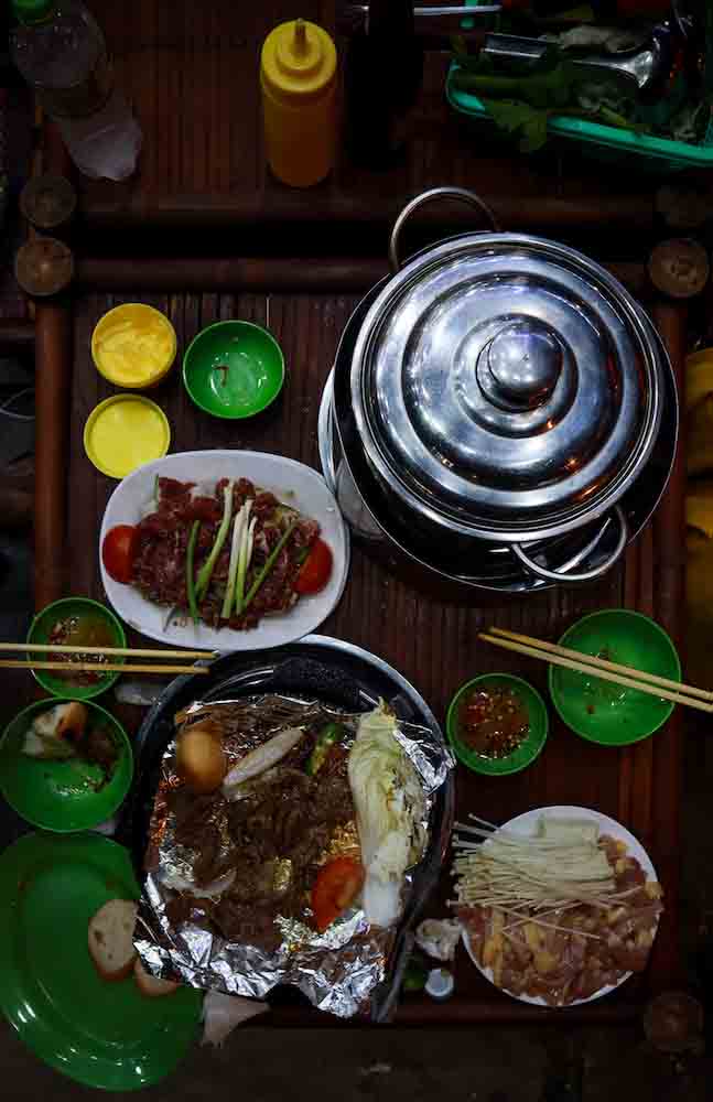 ส่วนมื้อค่ำแนะนำว่าไม่ต้องไปไหนให้ไกลจากย่านเมืองเก่าครับ เพราะว่าที่นี่กลางคืนจะถูกแปลงสภาพเป็นร้านกึ่งเหล้ากึ่งหมูกะทะครับ เราสามารถทานหมูกะทะเวียดนามแกล้มเบียร์ฮานอบได้ทุกคืน แทบไม่น่าเชื่อเลยใช่ไหมครับ นั่นก็เพราะว่าแต่ละร้านก็จะมีสูตรเด็ดมีรสชาติที่แตกต่างกันออกไป ที่นี่ไม่เรียกหมูกะทะครับแต่จะเรียกว่าบาร์บีคิว และบางร้านยังเสริมด้วยเมนูชาบูชาบูด้วย รวมไปถึงอาหารเวียดนามอีกหลายหลายเมนู แต่ละร้านก็จะมีเราเลือกกันแบบหลากหลาย แต่ที่เราเลือกทานร้านนี้ก่อนเพราะว่าตกแต่งแนวสีเหลืองเป็นหลักครับ ผมใช้กล้อง Canon EOS M50 เก็บภาพกลางคืนมา โดยลองไม่ใช้ขาตั้ง ตัวกล้องทำหน้าที่ได้ดี แม้ภาพจะมีความคอนทราสต์สูง ก็ลงรายละเอียดได้หมด