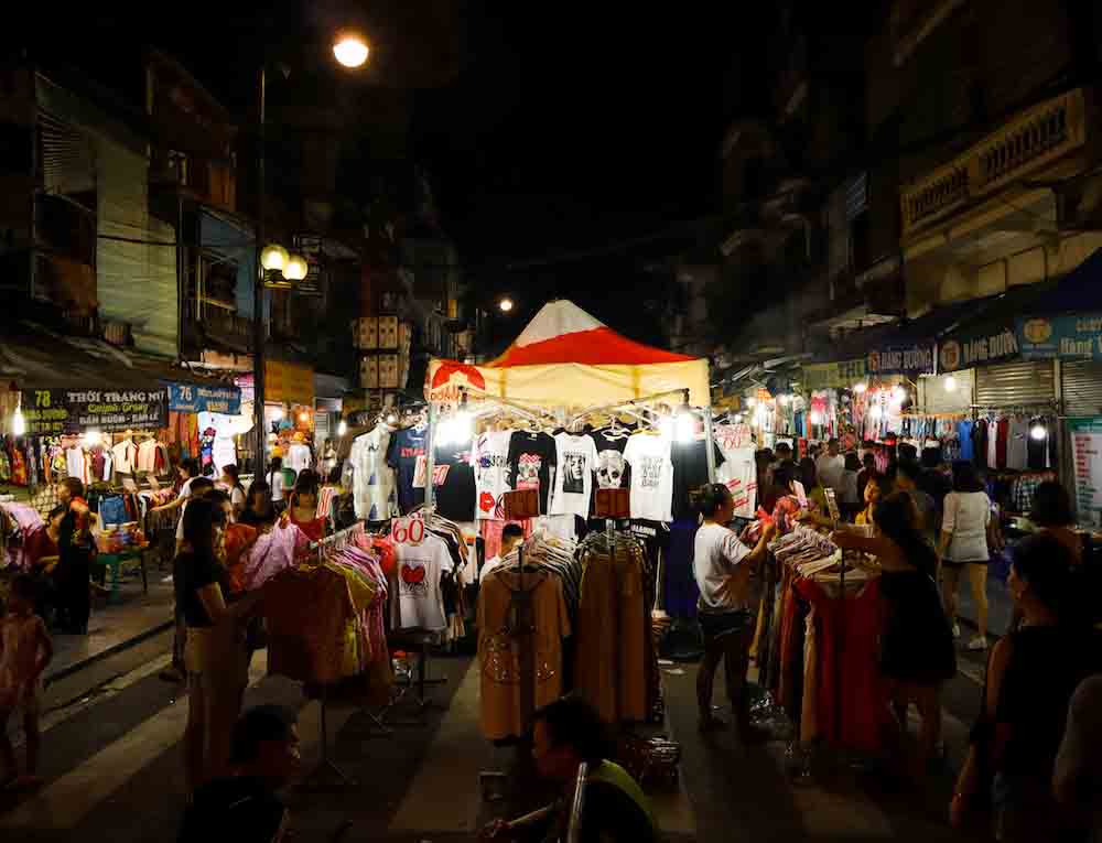 เป็นย่านที่มีประวัติมายาวนานกว่า 600 ปี ที่เรียกชื่อแบบนี้ เนื่องมาจาก 36 อาชีพอันเก่าแก่ที่ทำมาค้าขายกันในย่านนี้ โดยได้มีการแบ่งถนนออกเป็น 36 สาย เป็นย่านค้าขายที่คึกคักด้วยสินค้านานาชนิดทั้งของกิน เสื้อผ้า รองเท้าผ้าใบ และของที่ระลึกที่เป็นทั้งผ้าไหม กระเป๋า หรือเครื่องเงินที่มีลวดลายปราณีตสวยงามมากมาย ซึ่งเราก็ได้สอยชุดอ๋าว หญ่าย ซึ่งเป็นชุดประจำชาติของเวียดนามมาใส่ถ่ายรูปเล่นกันที่ถนนสายเสื้อผ้านี่แหละ บางร้านก็ต่อราคาได้ บางร้านก็ต่อได้เหมือนกันแต่ไม่ลด!!