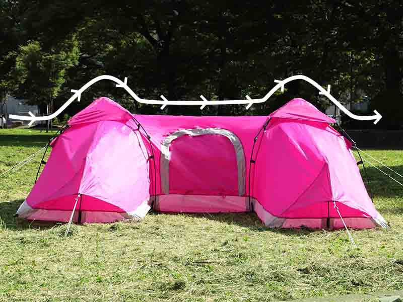 ที่เห็นนี่คือเต็นท์ดีไซน์ใหม่ที่ออกแบบสำหรับการนอน 2 คน บนพื้นฐานความคิดที่ว่าต้องการให้ผู้ใช้เต็นท์ได้มีพื้นที่ส่วนกลางร่วมกัน แต่ยังรู้สึกถึงความเป็นส่วนตัวและคำนึงถึงความปลอดภัย