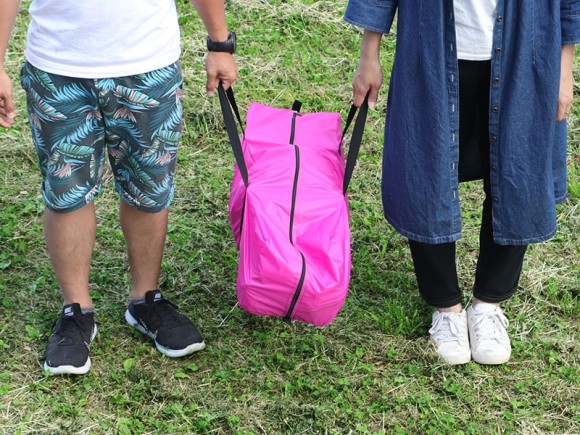H เต็นท์ นี้สามารถพกพาไปได้โดยง่าย บรรจุในกระเป๋าถือที่มีสายรัด มีจำหน่ายที่ Amazon ญี่ปุ่น ราคา 19,580 เยน หรือราว 6 พันบาท