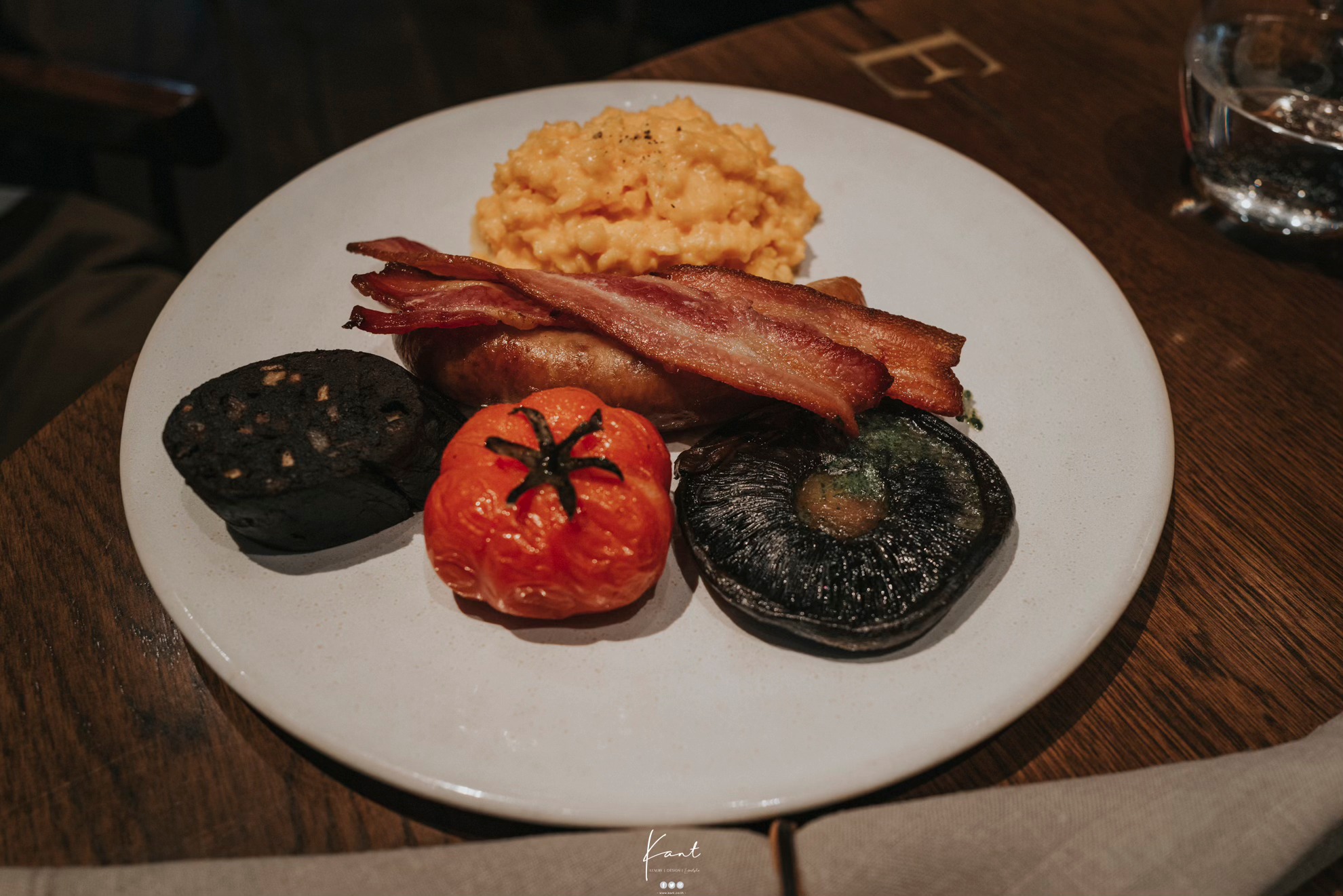 English Breakfast ก็เป็นอีกจานที่ห้ามพลาด แน่นอนว่าบนจานที่เสิร์ฟมามีทั้ง แบล็กพุดดิ้งหรือ Blood Sausage เป็นไส้กรอกเลือดหมูผสมมันหมู มะเขือเทศ เห็ด Protobello ไส้กรอกหมู Middle White เป็นหมูสายพันธุ์ดีของอังกฤษ ส่วนไข่เลือกได้ เราเลือกเป็นไข่คน เสิร์ฟมาพร้อมกับขนมปังโทสต์และเนย