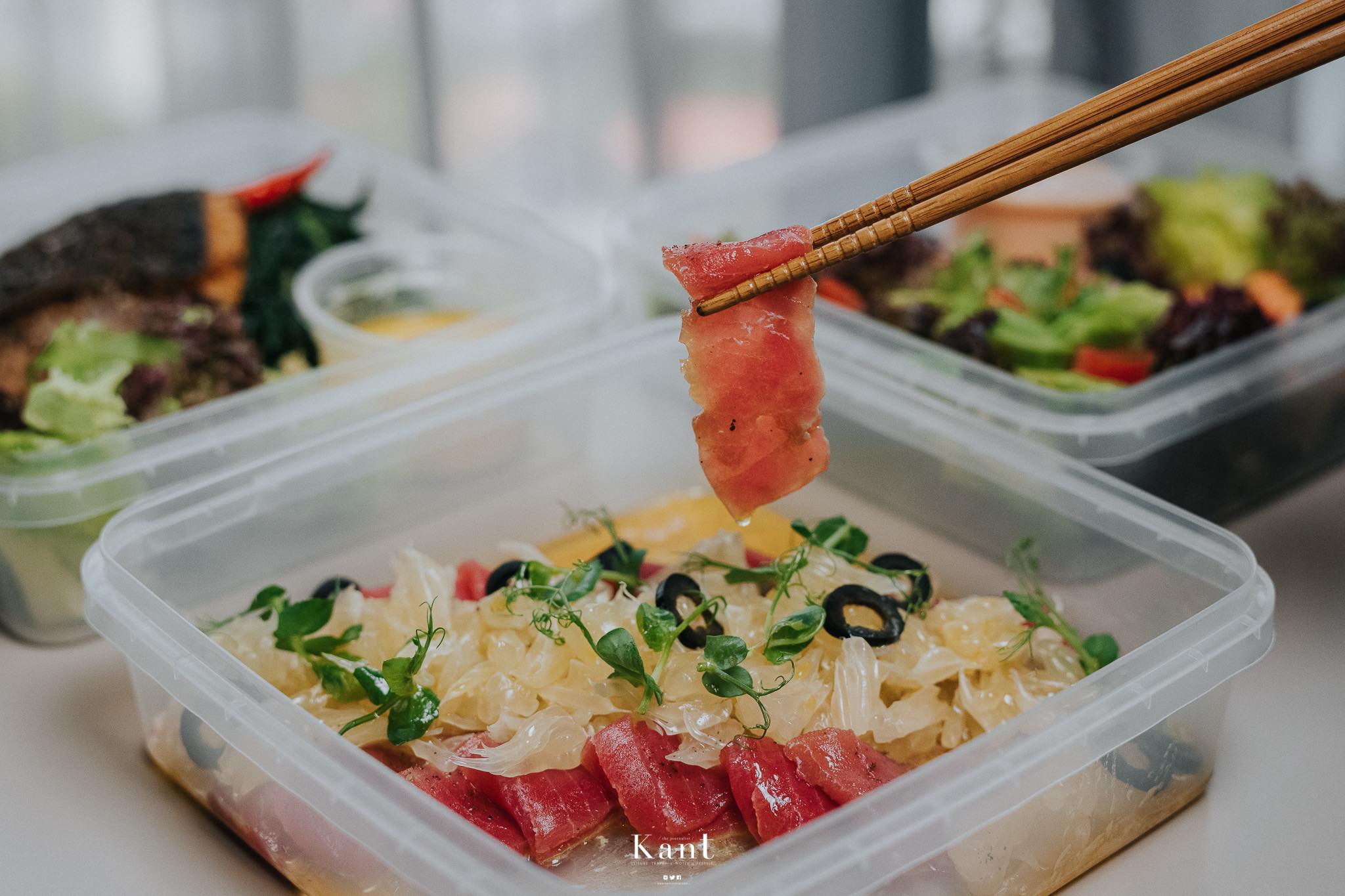 ลองเพิ่มแอคชั่นโดยใช้ตะเกียบคีบทูน่าดู ก็สวยไปอีกแบบ