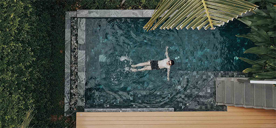 เพราะ “MASON” ในภาษาอังกฤษ แปลว่า “ช่างแกะสลักหิน” วัสดุที่ใช้จึงเน้นหิน ไม้ ให้ความรู้สึกเข้าถึงธรรมชาติมากๆ ผสานเข้ากับสระน้ำในวิลล่าทุกหลัง และถ้าอยากจะไปเล่นน้ำทะเลก็เพียงแค่เดินลงไปไม่กี่ก้าว จึงอยากแนะนำให้ลองมาพักดูสัก 3 วัน 2 คืน กำลังดี ตามคอนเซปต์ Leisure Travel ของผม