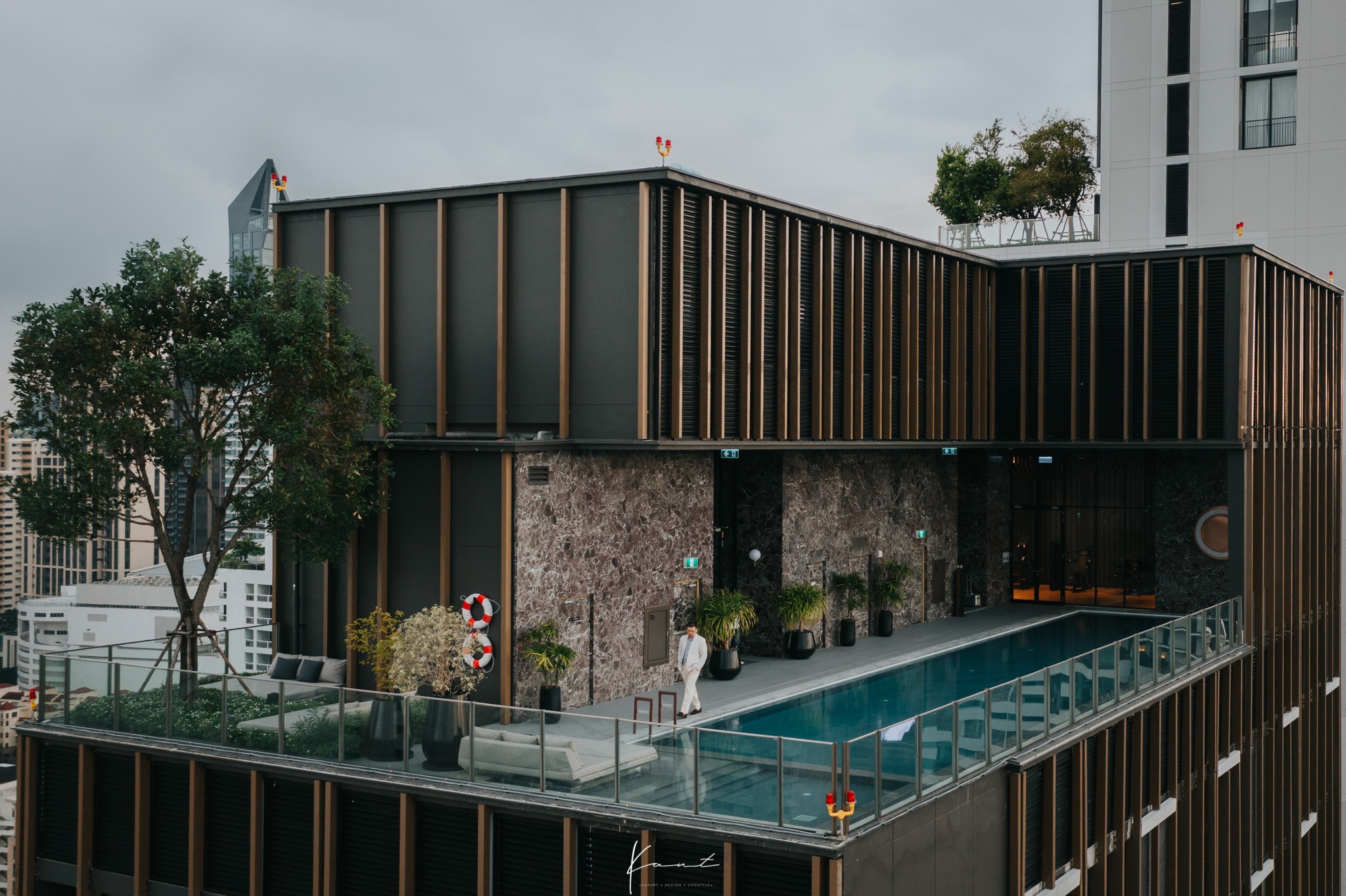 พื้นที่ส่วนกลางอีกจุดที่เป็นไฮไลท์และทำให้ผมประทับใจมากคือที่ชั้น 25 ชั้นบนสุดของตัวอาคาร จะมี Sky Pool เป็นสระแบบ Infinity Edge Pool ระบบเกลือ ขนาดยาว 21 เมตร หันหน้าไปทางทิศตะวันตกพร้อมกับ Pool Deck เอาไว้นั่งชมวิวในสระ สามารถเปิดรับมุมมองได้ 180 องศา ขณะที่ใกล้ๆ กันจัดเป็นสวน (อีกแล้วครับทั่น) พร้อมกับ Day Bed ตัวใหญ่ อันหน้าไปทางทิศตะวันออกเฉียงเหนือ เพื่อจะหลบแดดในตอนบ่าย เอาไว้นั่งหรือนอนรับลมเย็นๆ ได้
