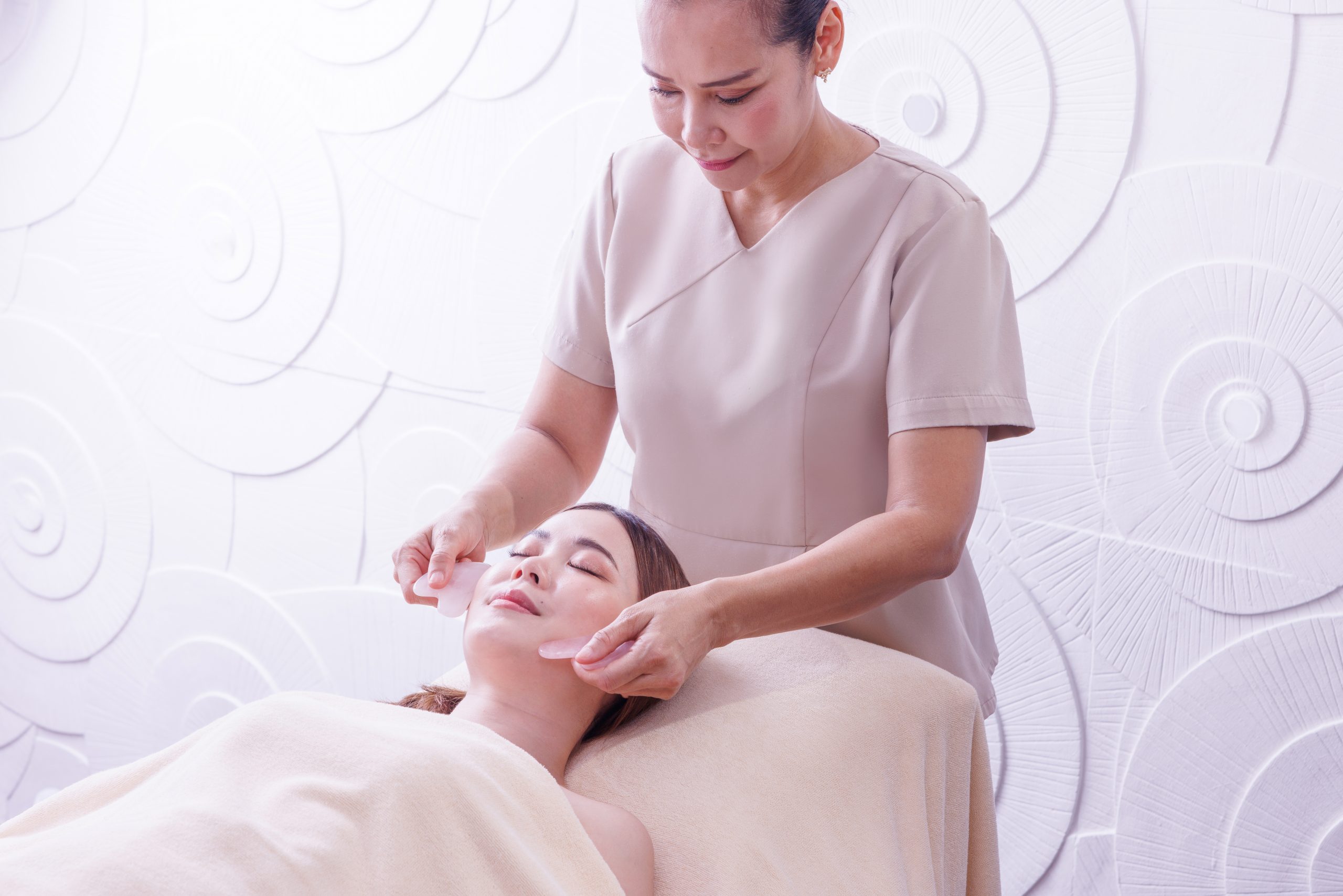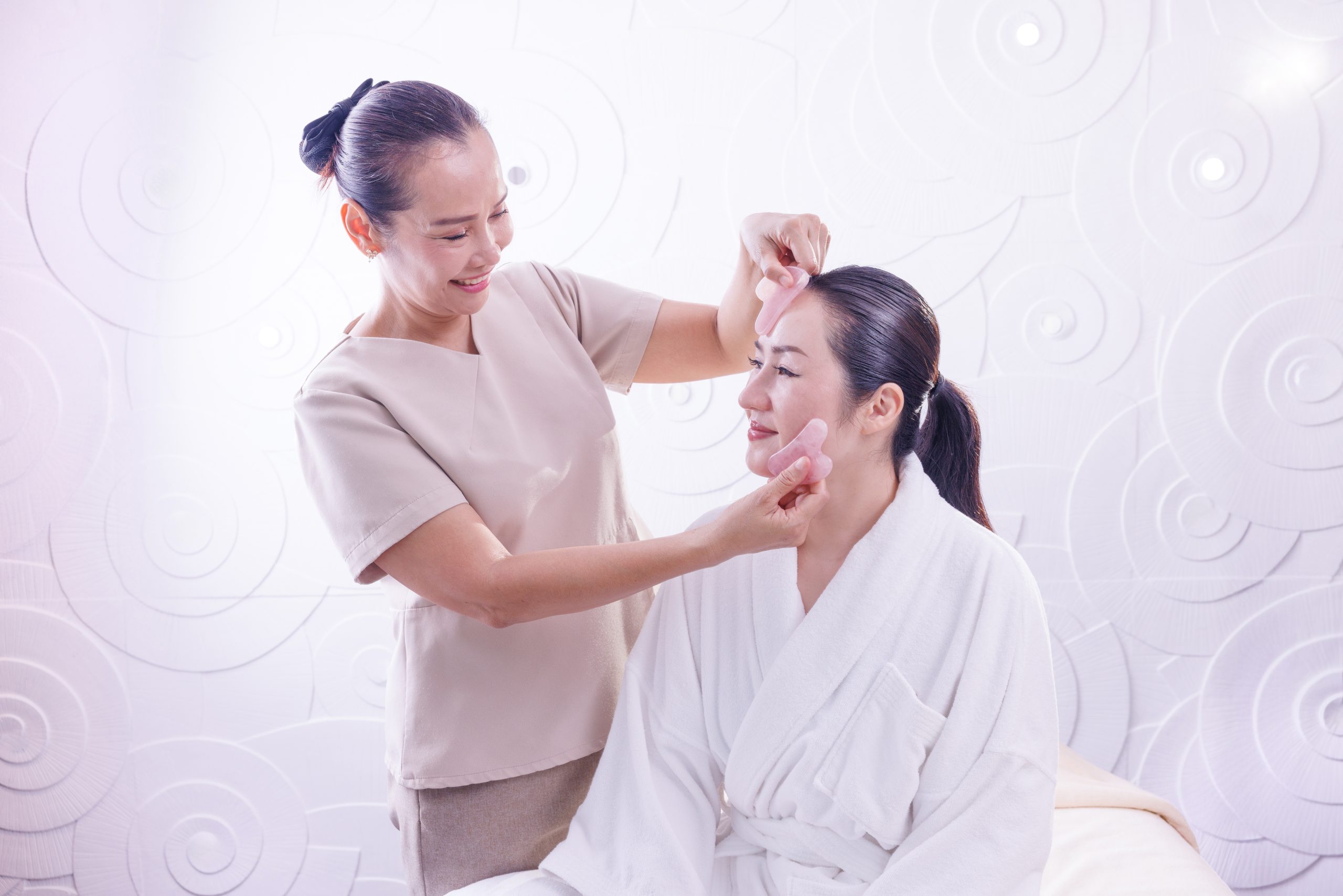 การนวดผ่อนคลายด้วยน้ำมันหอมระเหยเป็นเวลา 60 นาที แล้วจึงตามด้วยการนวดหน้ายกกระชับด้วยกัวซาโดยใช้หินชมพูโรสควอตซ์(Rose Quartz)