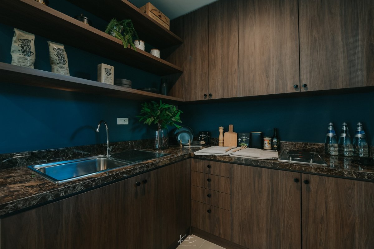 ครัวขนาดพอดีที่มีฟังก์ชั่นทั้งการเตรียมอาหารและส่วนของการปรุง บ้านคนรุ่นใหม่ๆ มักจะไม่ทำครัวหนักเท่าไร ผมว่าแทบไม่ต้องต่อครัวไทยด้านนอกเพิ่มเลย