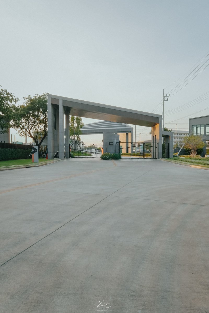 ทางเข้าเป็นซุ้มประตูขนาดใหญ่ดีไซน์โมเดิร์น พร้อมกับระบบรักษาความปลอดภัยที่หนาแน่น