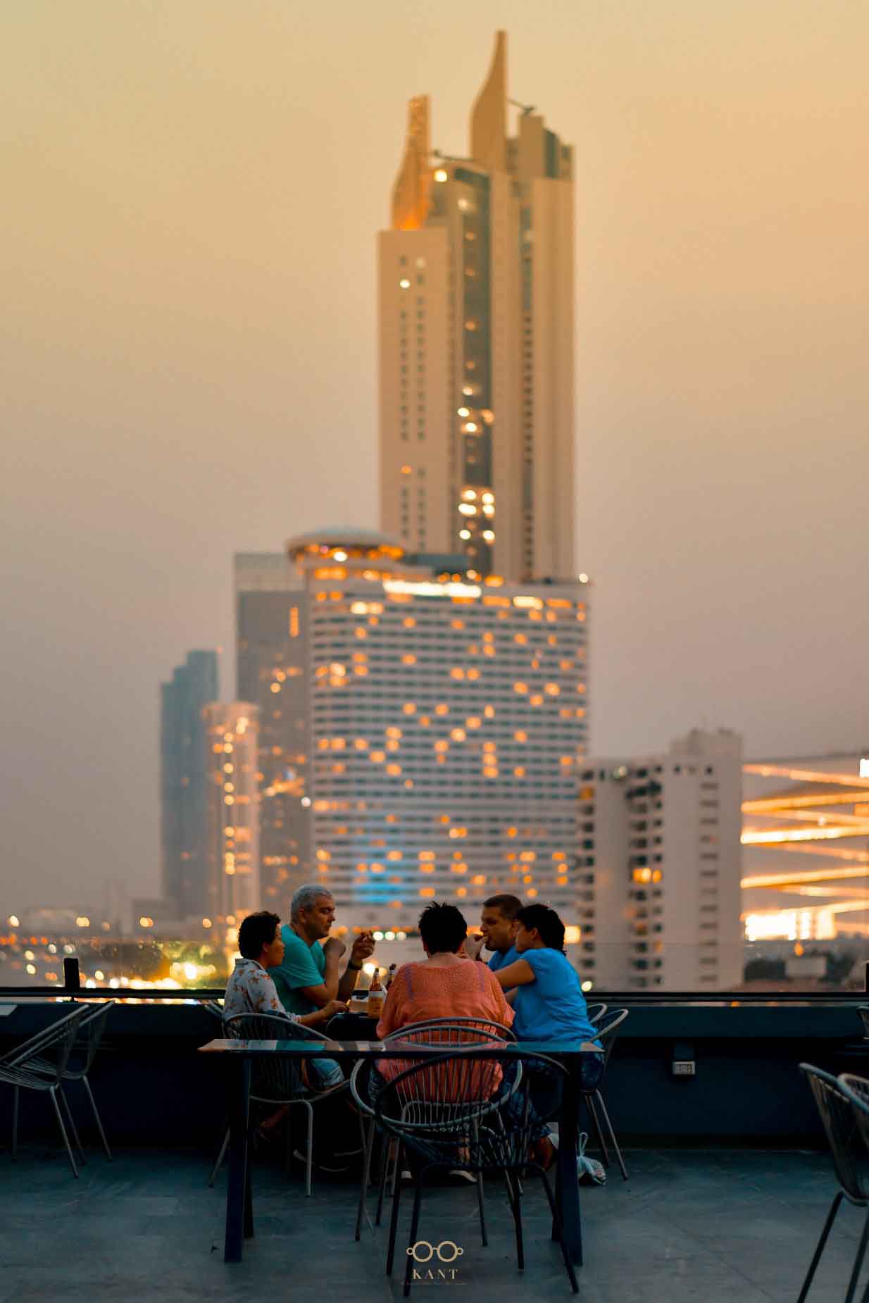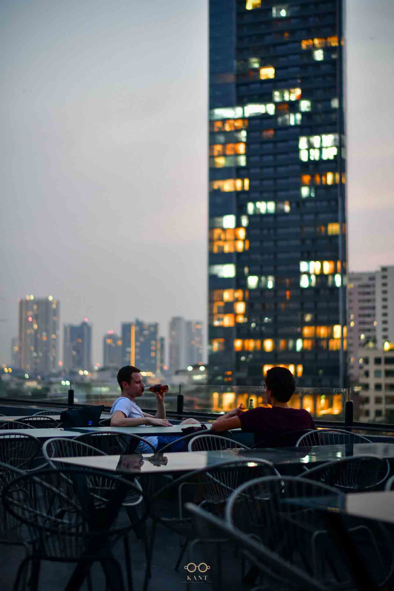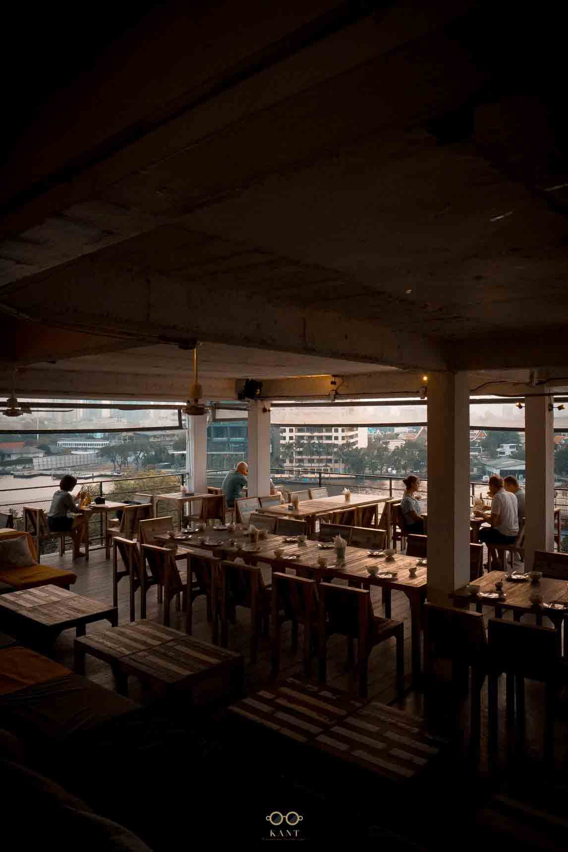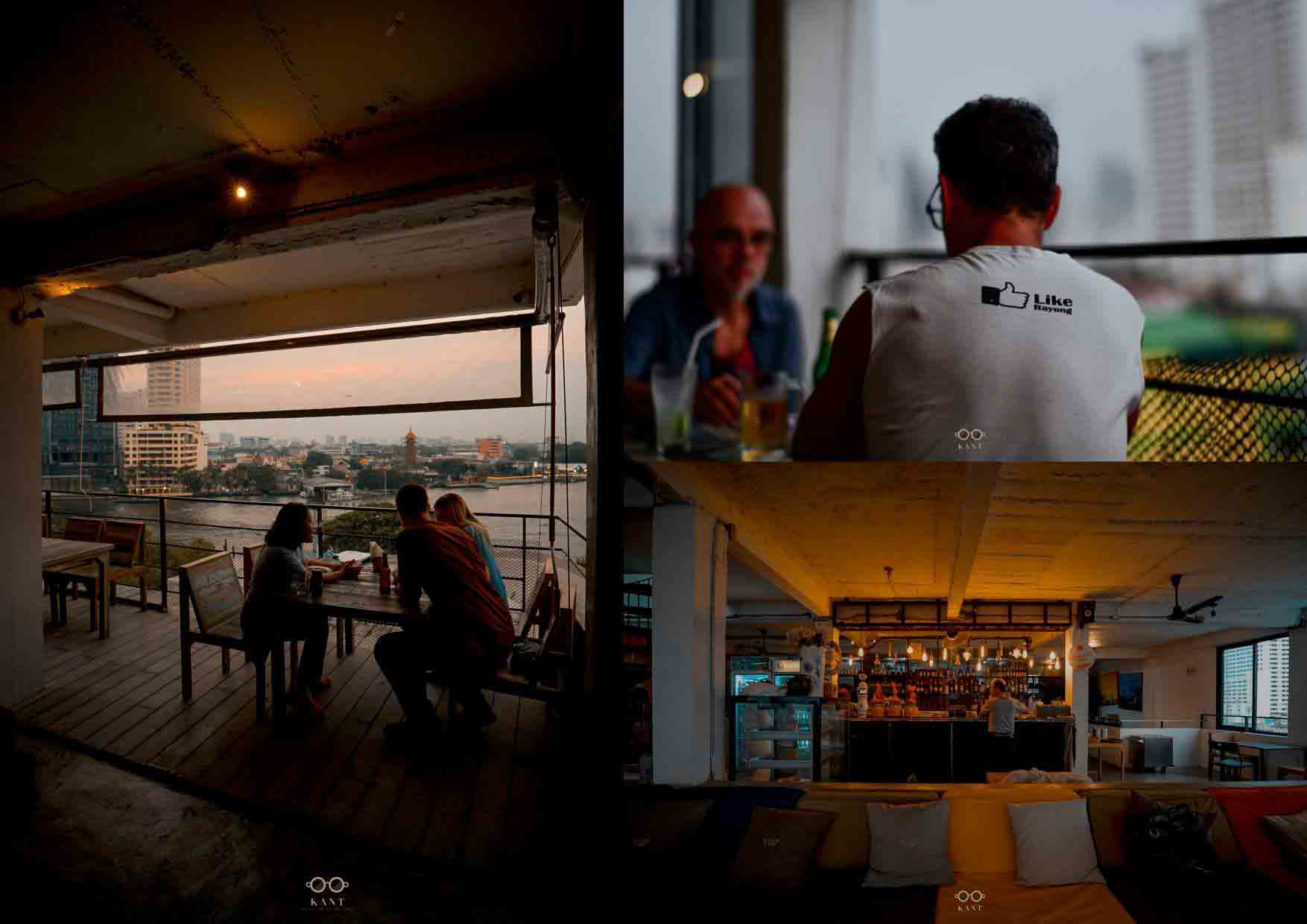 ที่ชั้น 8 เป็นร้านอาหาร ขึ้นบันไดเวียนไปจะเป็น roof top ถ้าวันฟ้าเปิด อากาศดี มีลมชิลล์ มีวิวกรุงเทพฯ ริมน้ำสวยๆ มองขวาก็เป็นสะพานพุทธ มองเห็นยอดพระปรางค์วัดอรุณไกลๆ ถัดมาเป็นโดมของคอนโด Bangkok River Park คลาสสิคมาก ซ้ายมือเป็นโรงแรมน้อยใหญ่ริมน้ำ ต่างแข่งกันส่องไฟโดดเด่น แต่ที่เห็นแล้วสะดุดตาคือ ICONSIAM กับ Millennium Hilton มีบันยันทรี เรสสิเดนซ์ที่กำลังจะเปิดให้บริการ จิบเบียร์ไป สลับกับมองดูบรรยากาศการสัญจรทางน้ำ เรือโดยสารลำน้อยใหญ่ล่องนาวาไปมา เพลิดตา เพลินใจ โดยมีฉากหลังเป็นพระอาทิตย์อัสดงไว้คอยเป็นกับแกล้มชั้นดี