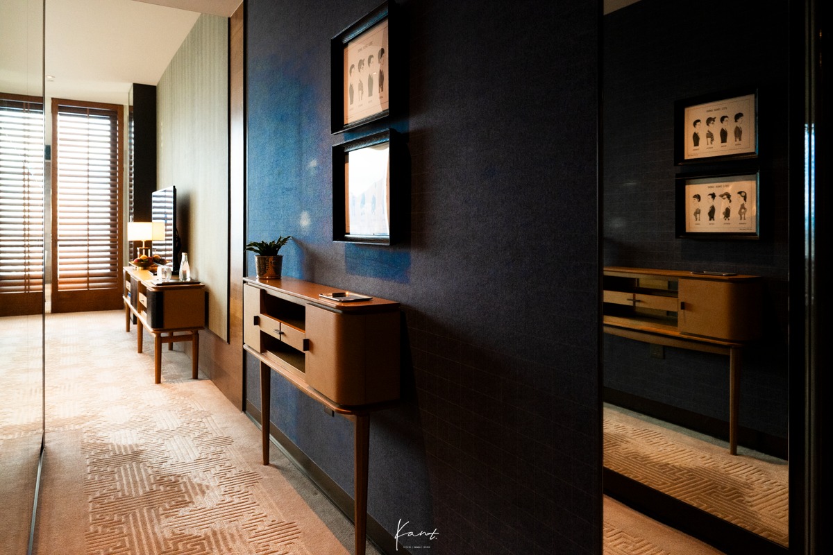 ผนังทางเดินห้องพักประดับด้วยลวดลายฮ่องกงแบบโมเดิร์น เรากำลังจะเดินไปห้องพักกันเป็นห้อง Club Suite