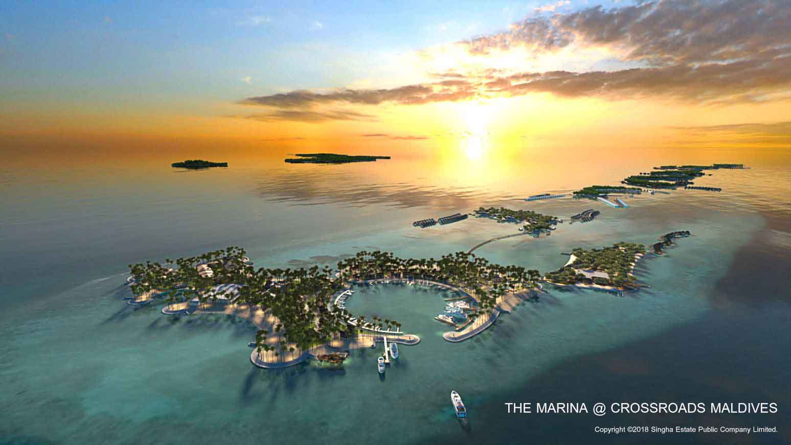 2 รีสอร์ทสุดหรู ตั้งอยู่ภายใน “ครอสโร้ดส์” (CROSSROADS) อภิมหาโครงการสำหรับการพักผ่อนและสันทนาการครบวงจรแห่งแรกในมัลดีฟส์ โดยสิงห์ เอสเตส (ประเทศไทย) ประกอบด้วยหมู่เกาะสร้างใหม่จำนวน 9 เกาะ โดยแต่ละเกาะจะนำเสนอประสบการณ์พักผ่อนสไตล์รีสอร์ทที่ต่างกันออกไป ภายใต้แนวคิด “หนึ่งเกาะต่อหนึ่งรีสอร์ท” ตั้งอยู่บนเอ็มบูดู ลากูน (Emboodhoo Lagoon) ห่างจากสนามบินนานาชาติเวลาน่า และเมืองหลวงมาเล่ เพียง 15 นาที โดดเด่นด้วยสถาปัตยกรรมและการตกแต่งที่สะท้อนถึงประวัติศาสตร์ของมัลดีฟส์ เพื่อสร้างบรรยากาศและประสบการณ์ให้แก่ผู้เข้าพักได้สัมผัสแก่นแท้ของมัลดีฟส์ตั้งแต่อดีตถึงปัจจุบัน เพียบพร้อมด้วยกิจกรรมและความบันเทิงระดับเวิร์ลคลาสอย่างเต็มรูปแบบ ทั้งโรงแรม รีสอร์ท ร้านค้าปลีก ภัตตาคาร กีฬาทางน้ำ สถานที่ท่องเที่ยวเชิงวัฒนธรรม และศูนย์อนุรักษ์ทางทะเล