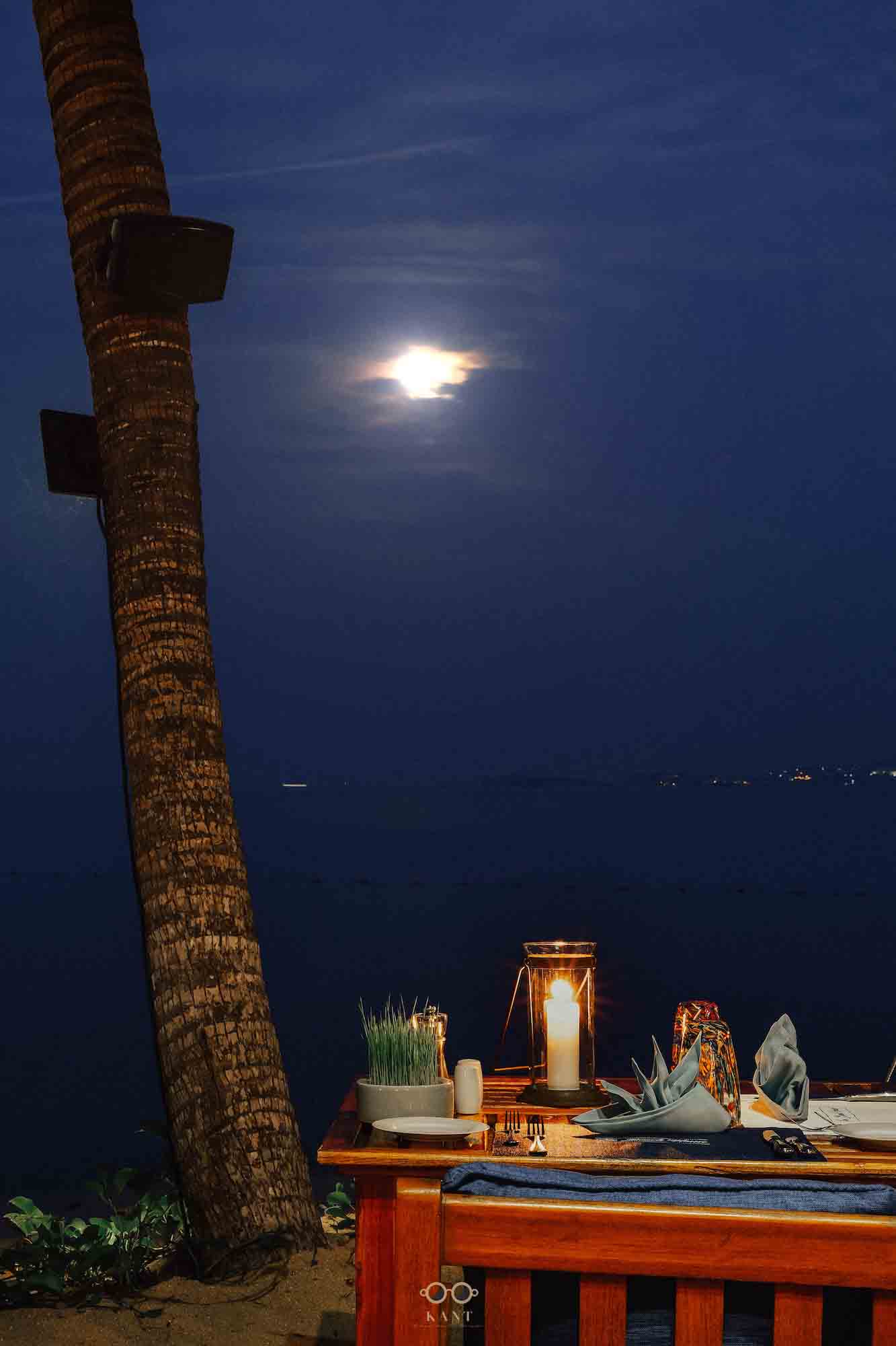 ถ้าเป็นดินเนอร์ ก็จะได้ฟีลแบบนี้ครับ วันที่ไปพระจันทร์เต็มดวงพอดี ก็จะเป็นตัวช่วยเพิ่มความโรแมนติกสำหรับดินเนอร์หรู ริมทะเลแบบนี้ เสียดายที่พระจันทร์ขี้อายไปหน่อย แอบหลังเมฆ โผล่มาเล็กน้อย ต้องอาศัยแสงตะเกียงเพิ่มบรรยากาศ และมีดนตรีสดบรรเลงให้ฟังตลอดทั้งคืน สลับกับการเปิดเพลงจากดีเจ