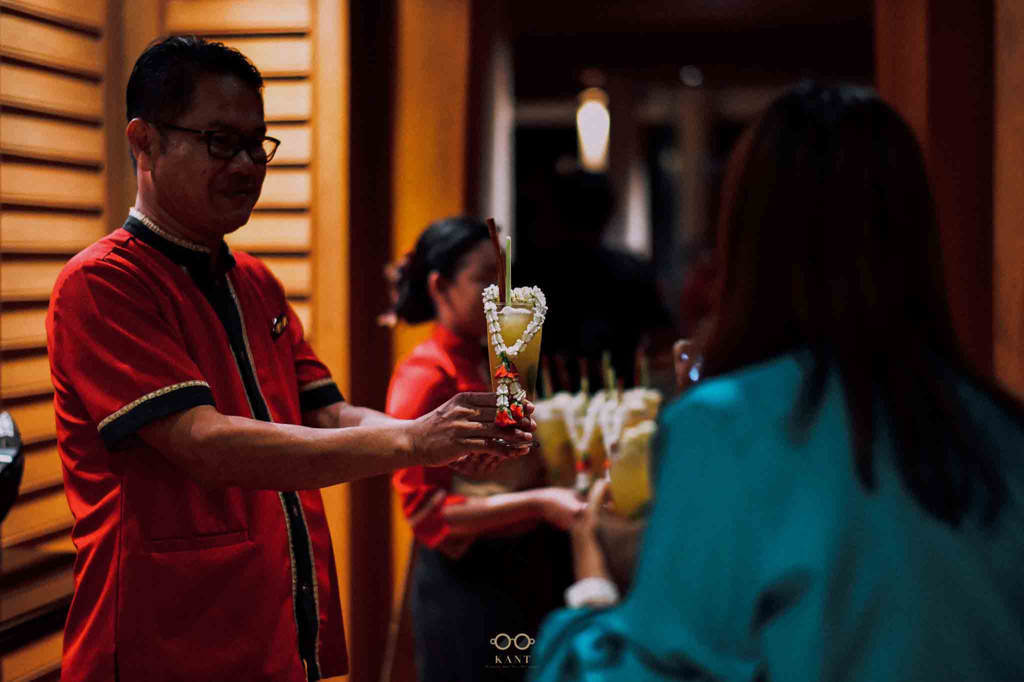 สามารถสั่งเครื่องดื่มได้จากบาร์ครับ Signature Drinks ที่แนะนำคือ Santiburi Mojito ที่รังสรรค์จากผลไม้ต่างๆ ไม่เพียงแต่มะนาวเท่านั้น แต่ยังมี มะม่วง ส้ม เบอร์รี่ ผสมกับมิ้นต์ ให้เราได้ลองเปลี่ยนบรรยากาศดู หรือจะเป็นเครื่องดื่มสมุนไพรก็มีครับ ขนมาครบเครื่องทั้งข่า ตะไคร้ พริก