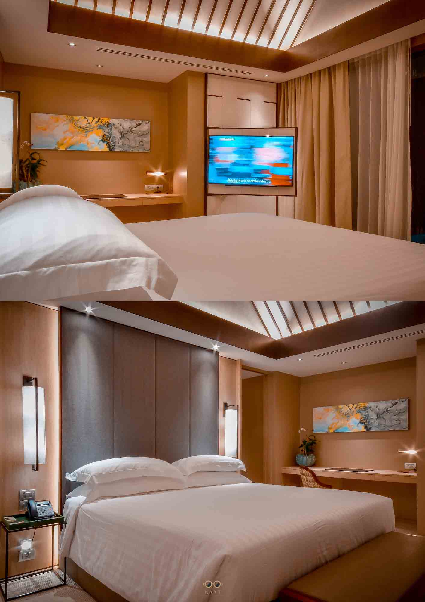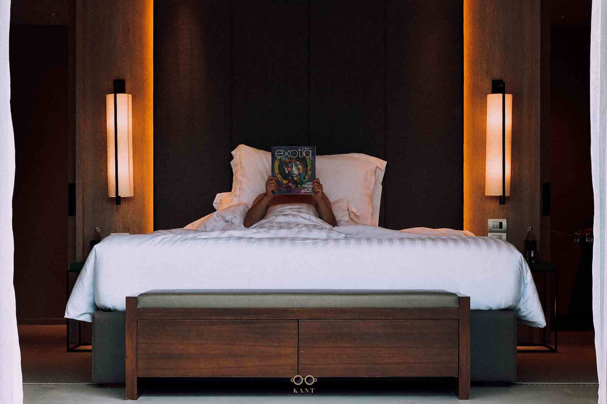 ส่วนบนเตียงมีหมอนให้เลือกหลากหลาย แถมยังสามารถควบคุมแสงไฟเองได้ ตามฟีล เดี๋ยวนี้เหมือนเป็นเทรนด์ของโรงแรมไปเสียแล้ว และมีผนังป้องกันเสียงรบกวน ทำให้นอนหลับสบายตลอดทั้งคืน
