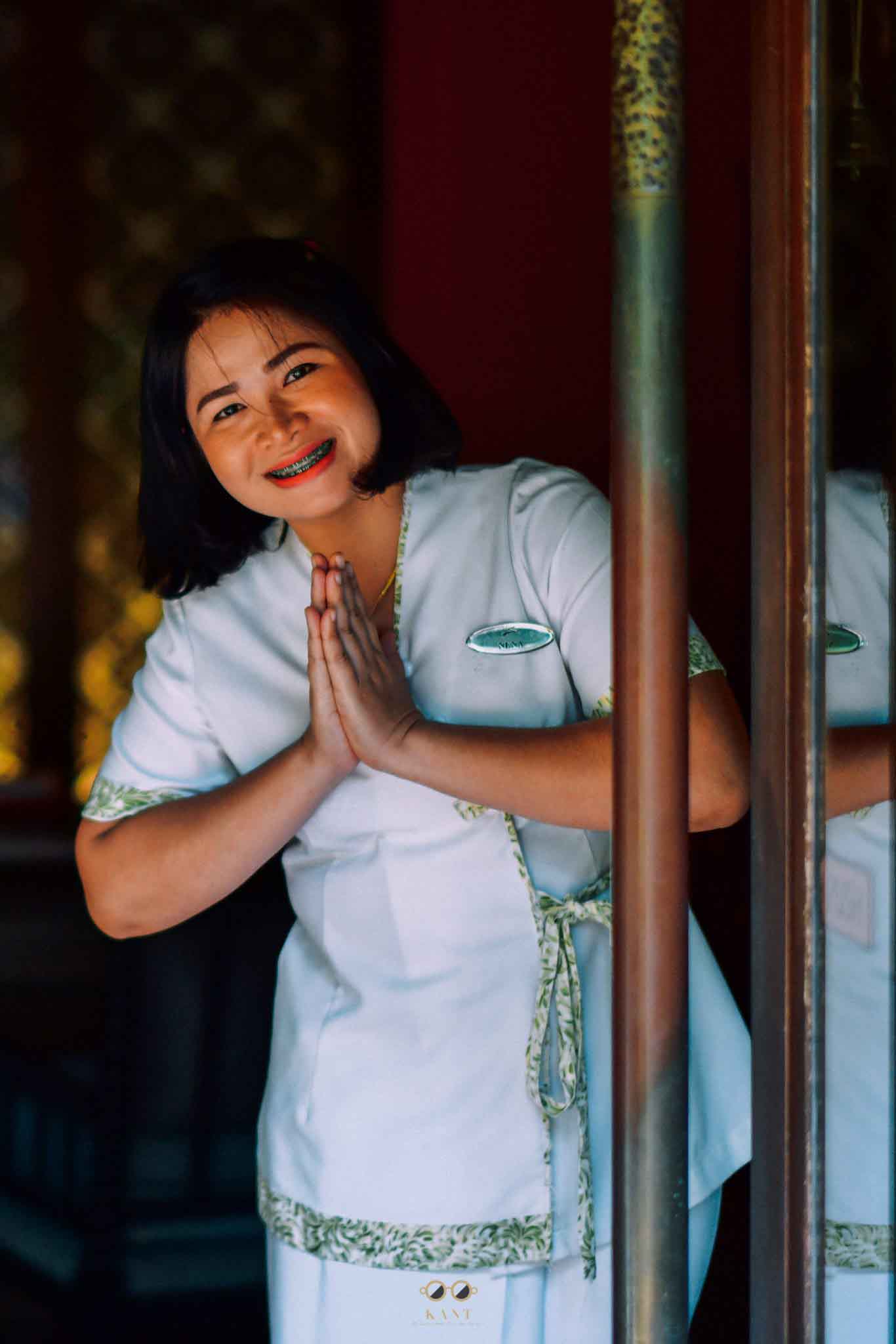 พูดถึงพนักงานของสันติบุรี ก็ต้องบอกว่า พนักงานที่นี่บางคนอยู่มาตั้งแต่ยุคเริ่มต้น บางคนอยู่มาเกิน 10 ปี จนเป็นบ้านหลังที่ 2 ซึ่งส่วนมากเป็นคนพื้นเพที่นี่ จนรู้สึกว่า แขกทุกคนมาเยี่ยมบ้านของตนมากกว่า เราจึงได้เห็นพนักงานในชุดฟอร์มสีแดงมารูนขลิบทองที่พร้อมเอาใจใส่ดูแลเราตลอดการเข้าพักอย่างน่าประทับใจครับ กลายเป็น Signiture Service ที่ยาก หากใครจะลอกเลียนแบบได้ครับ