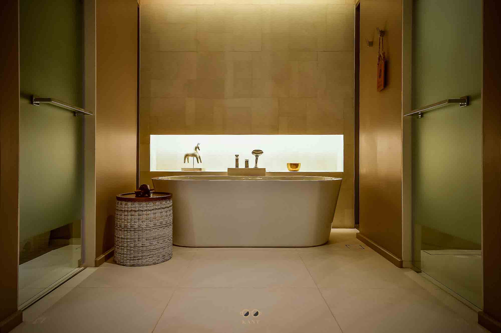 ห้องน้ำที่วิลลาก็ถือว่ากว้างมากครับ แยกโซนให้พร้อมสรรพ ทั้ง อ่างอาบน้ำ ฝักบัวแบบเรนชาวเวอร์ และพรั่งพร้อมไปด้วยเครื่องใช้ในห้องน้ำจากแบรนด์ “Panpuri” ที่ออกแบบมาให้มีเอกลักษณ์เฉพาะสันติบุรี