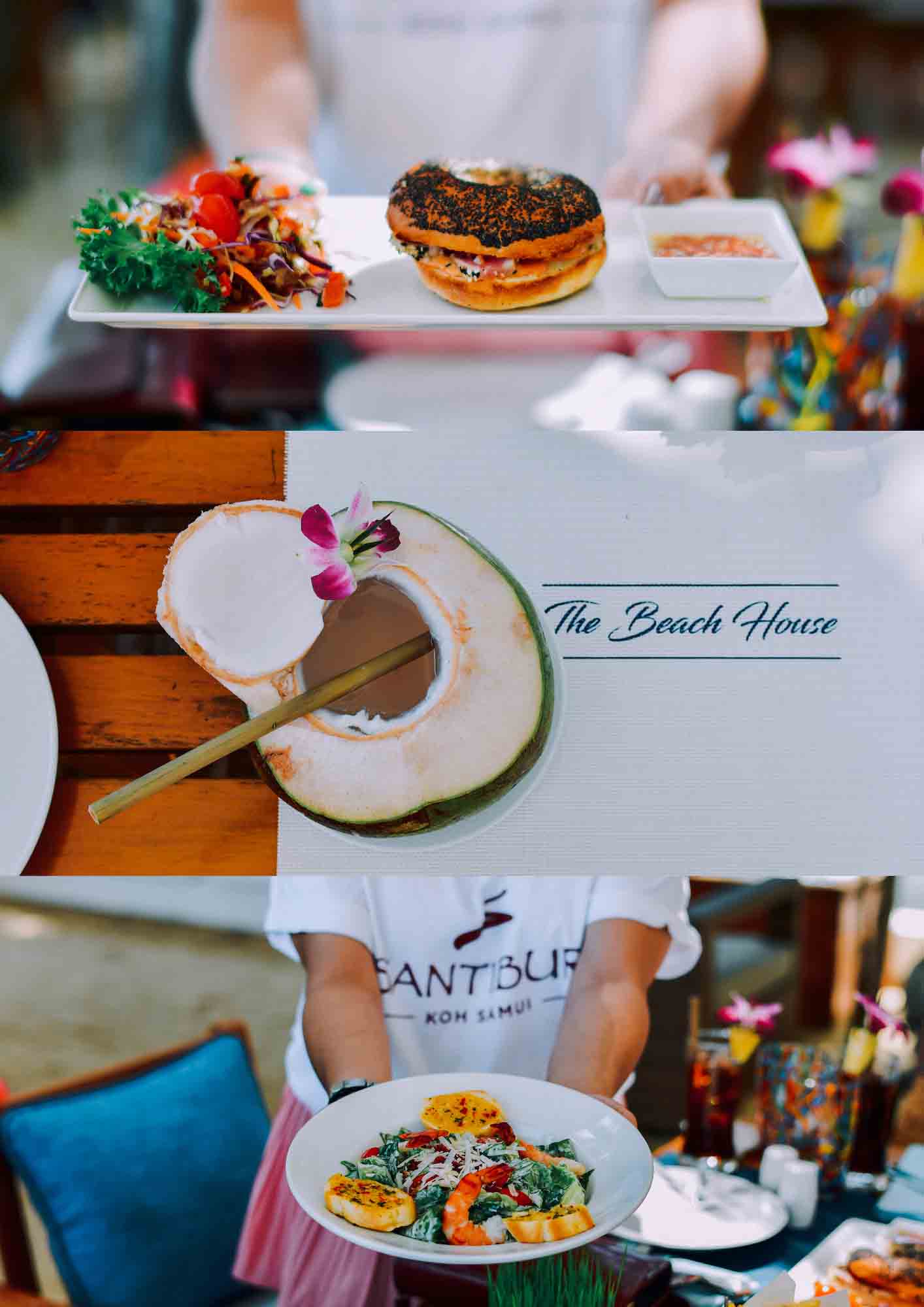 อาหารหนักเบา เขามีให้บริการตลอดทั้งวันที่ “เดอะบีชเฮ้าส์” แต่ถ้ามาที่สันติบุรี ผมกระซิบว่าเมนูที่ต้องสั่งเลยคือซีซาร์สลัดรสชาติเข้มข้น และผัดไทสูตรพิเศษของที่นี่ครับ อร่อยมาก