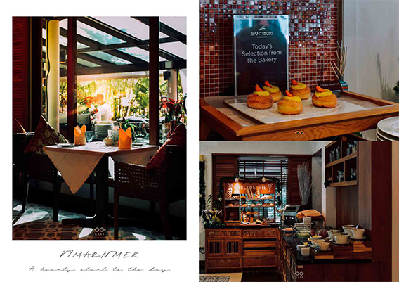 หรือใครจะไปทานที่ห้องอาหารเช้าก็ได้ครับ มีทั้ง “วิมานเมฆ” อยู่โซนด้านใน ให้บริการอาหารเช้าสไตล์ อินเตอร์คอนติเนนตัล บุฟเฟต์ แต่ที่เก๋คือจะมีเมนูที่เลือกโดย FB (Food & Beverrage) มีให้เลือกนั่งทั้งอินดอร์และท่ามกลางสวนสวยที่ยื่นลงไปในสระน้ำ