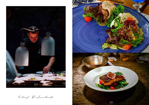 มื้อค่ำที่ “เดอะบีชเฮ้าส์” เรามาลองดูว่าเชฟจะทำอะไรให้ทาน แอบเข้าไปสังเกตการณ์ในครัวมา (ที่นี่เป็นครัวเปิดครับ) เชฟทำ Burrata Mozzarella Salad มาเสิร์ฟเป็นจานแรก ส่วน Main เป็น Grilled Atlantic Salmon Steak ตัวซอสอร่อยดีครับ เป็นวาซาบิผสมซอสถั่วเหลือง ด้านล่างเป็นข้าวไรซ์เบอรี่