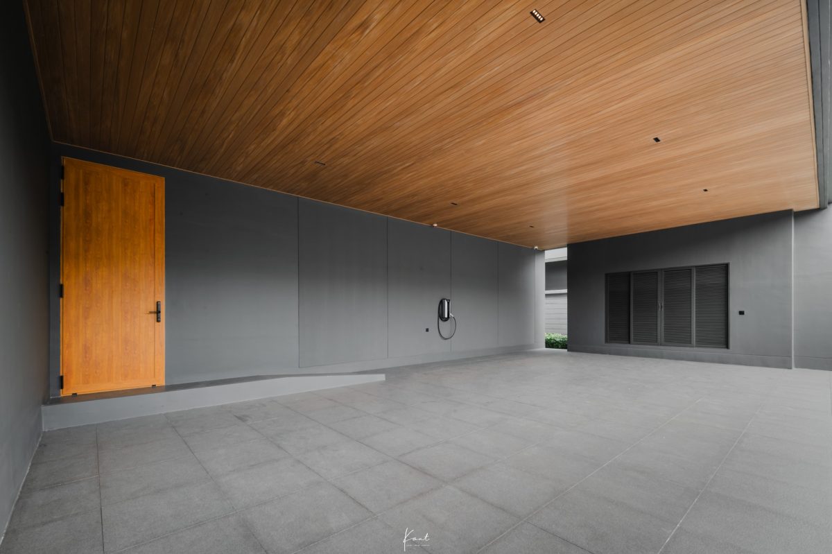 SIRANINN Residences ตั้งอยู่ในซอยพัฒนาการ 32 ซึ่งทำเลนี้เราพาไปชมมาเกือบครบทุกโครงการแล้วครับ ยอมรับเลยว่านับว่าจะหาที่ดินผืนใหญ่ทำเลแบบนี้ ที่อยู่ใกล้จุดขึ้นลงทางด่วนฉลองรัช สามารถเชื่อมต่อเอกมัย-ทองหล่อย่านศูนย์กลางธุรกิจและไลฟ์สไตล์ชั้นนำได้ได้ภายในเวลาไม่กี่นาที มุ่งหน้าพระราม 4 หรือจะไปทางถนนบางนา วงแหวนกาญจนาภิเษก ลาดกระบัง สุวรรณภูมิ ชลบุรีก็สะดวกเช่นกัน  ทำเลนี้ถือเป็น Prime Location มีสิ่งอำนวยความสะดวกต่างๆ ที่ออกแบบมาเพื่อยกระดับคุณภาพชีวิตของผู้พักอาศัยถือเป็นจุดเด่นของโลเคชั่นนี้ที่รวมเอาโครงการบ้านหรูไว้มากมาย เป็นทำเลที่รายล้อมด้วยสิ่งอำนวยความสะดวกครบครัน มีสถานศึกษาชั้นนำ อาทิ โรงเรียนนานาชาติ St. Andrews, โรงเรียนนานาชาติ BANGKOK PREP, โรงเรียนนานาชาติ Brighton ฯลฯ สามารถส่งมอบคุณภาพการศึกษาที่ดีให้กับคนรุ่นต่อไปได้ ทั้งยังใกล้โรงพยาบาล อาทิ โรงพยาบาลกรุงเทพ โรงพยาบาลสมิติเวช สุขุมวิท, โรงพยาบาลบำรุงราษฎร์, โรงพยาบาลสมิติเวชศรีนครินทร์ ฯลฯ ห้างสรรพสินค้า อาทิ The M District, The Common, J Avenue Thonglor ฯลฯ รวมถึงร้านอาหาร คาเฟ่ ร้านสะดวกซื้อ และอื่นๆ อีกมากมาย ในวันหยุดสบายๆ เราสามารถขับรถไปพักผ่อนท่ามกลางธรรมชาติขนาดใหญ่ใกล้ๆ บ้าน ได้ที่สวนหลวง ร.9 บึงหนองบอน หรือที่สวนเบญกิตติ ครับ  ด้วยความที่โครงการได้ออกแบบให้มีระยะถอยร่นจากถนนหลักมากพอสมควร โดยจัดทำเป็น Clubhouse และสวนด้านหน้า โดยมีแนวต้นไม้ใหญ่คอยเป็น Buffer ช่วยป้องกันเสียงได้ดีทีเดียวครับ เมื่อนั่งอยู่ด้านในโครงการ เราจึงแทบจะไม่ได้ยินเสียงรถราที่วิ่งอยู่ข้างนอกเลยครับ ราวกับเป็นโอเอซิสใจกลางกรุง  โครงการ SIRANINN Residences นำเสนอบ้านเดี่ยวระดับ Super Luxury ที่เชื่อมโยงรสนิยมและไลฟ์สไตล์ของผู้พักอาศัย สามารถสะท้อนตัวตนออกมาได้อย่างเหนือระดับ ด้วยความพิถีพิถันในทุกรายละเอียดของการออกแบบ ดำเนินการโดยสิงห์ เอสเตท  โครงการตั้งอยู่บนถนนพัฒนาการ 32 มีขนาดที่ดินอยู่ประมาณ 23 ไร่ ทว่ามีจำนวนน้อยเพียง 28 ยูนิตเท่านั้น บ้านทุกหลังจึงนำเสนอจุดเด่นเรื่องบ้านหน้ากว้าง ที่ดินขนาดใหญ่ ให้ความเป็นส่วนตัวในการพักอาศัยได้เป็นอย่างดีท่ามกลางสังคมแห่งการอยู่อาศัยที่มีคุณภาพครับ  Main Gate ตกแต่งด้วยวัสดุลายไม้ให้ความรู้สึก Tropical เลือกใช้หินสีเทาเข้มเข้ามาเพื่อสื่อถึงความยิ่งใหญ่ หนักแน่น ประตูทางเข้า-ออกแยกจากกันอย่างชัดเจน มีป้อมยามอยู่ตรงกลางพร้อมเจ้าหน้าที่รักษาความปลอดภัยคอยอำนวยความสะดวก สำหรับลูกบ้านใช้ระบบอ่านป้ายทะเบียนรถ (Car License Plate Entry) ทำให้สะดวกรวดเร็วดีครับ ส่วนด้านขวาชิดกับรั้วด้าน