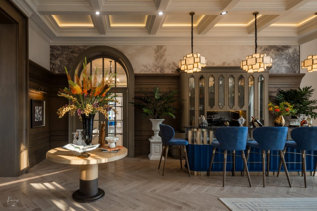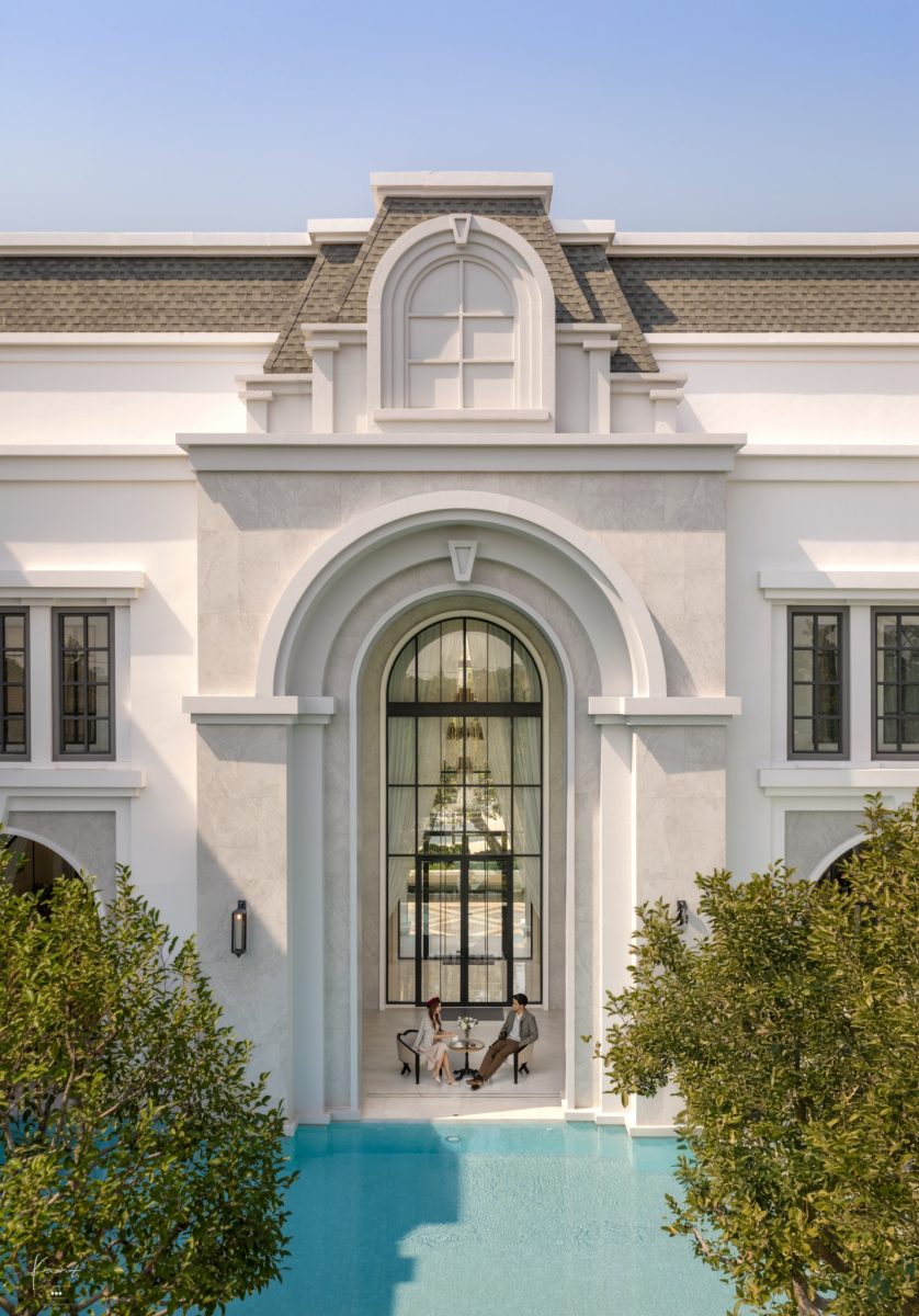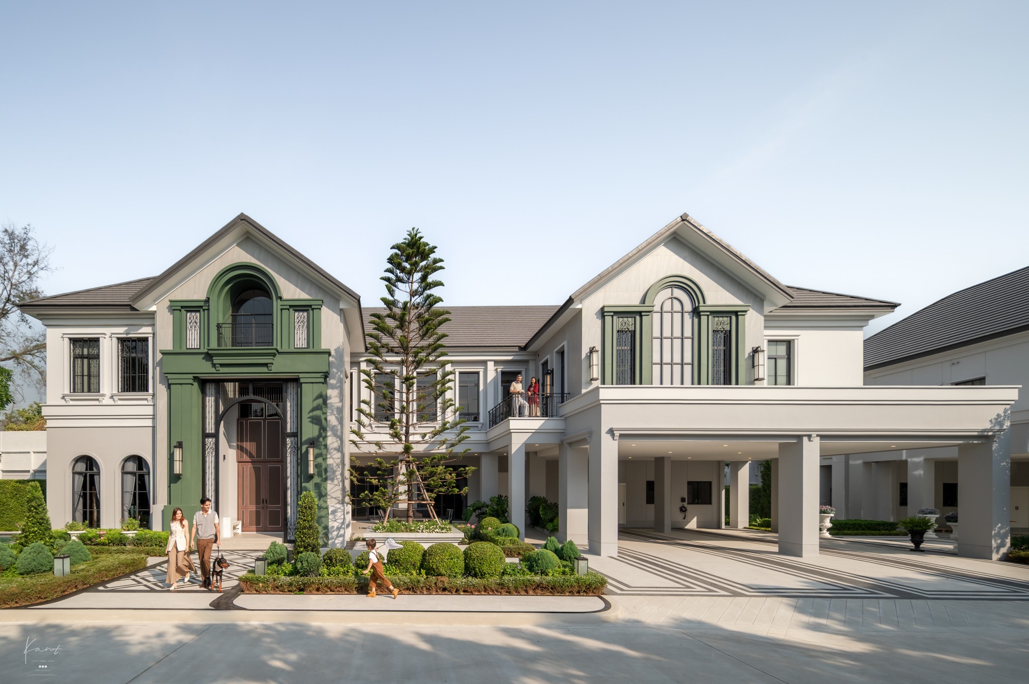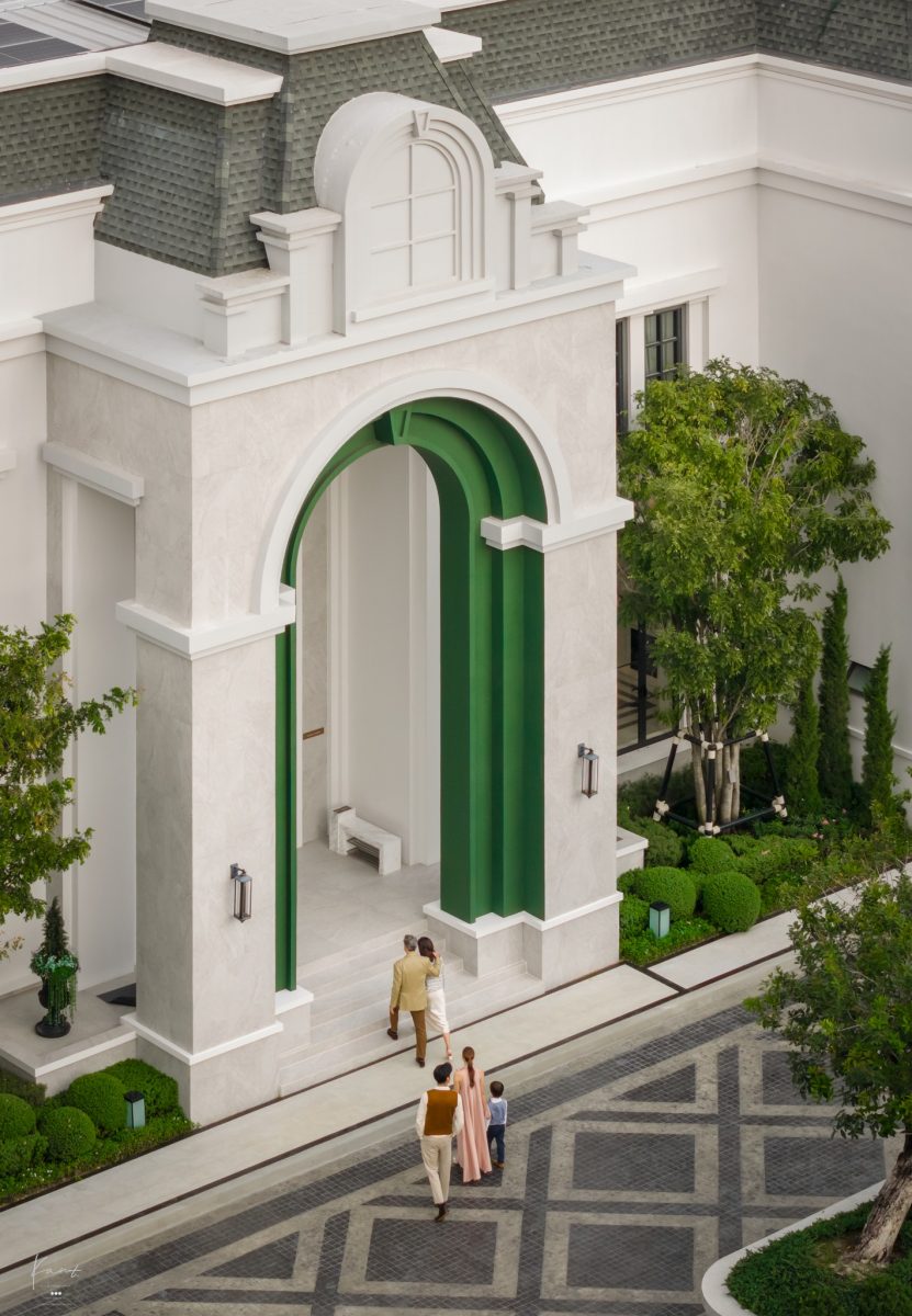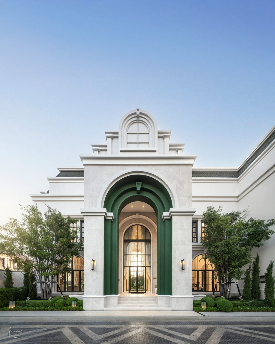 ในมุมมองของกานต์ สิ่งที่น่าประทับใจคือวิธีคิดของสถาปนิกครับ ที่ได้หยิบเอางานสถาปัตยกรรม Beaux-Arts แห่งกรุงปารีสยุคศตวรรษที่ 19 ซึ่งโดดเด่นเรื่องความพิถีพิถันมาตีความใหม่ผ่านคอนเซปต์ Twisted Classical Refinement ซึ่งได้ลดทอนความแข็งกระด้างลงและเติมความมีชีวิตชีวาเข้าไป ผ่านดีเทลอย่างหลังคา Gable Roof หรือการใช้สีเขียวมะกอก (Olive Green) คู่กับสีเทา ผลลัพธ์ที่ได้คือความรู้สึกสง่างามทว่าอบอุ่น เข้าถึงง่ายในสไตล์ Cozy Luxury Living