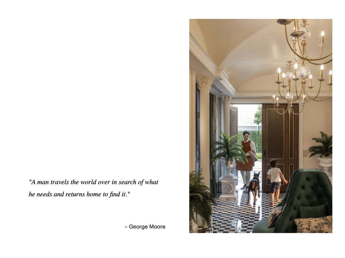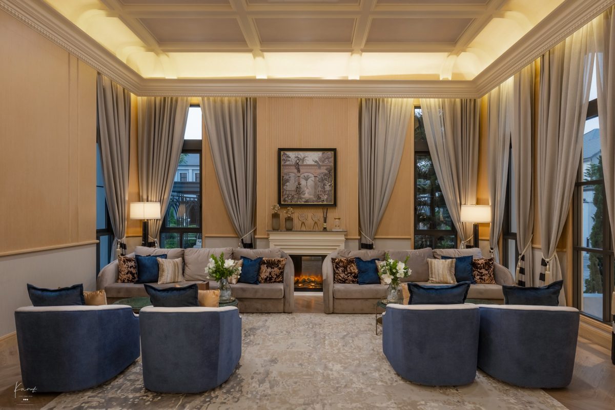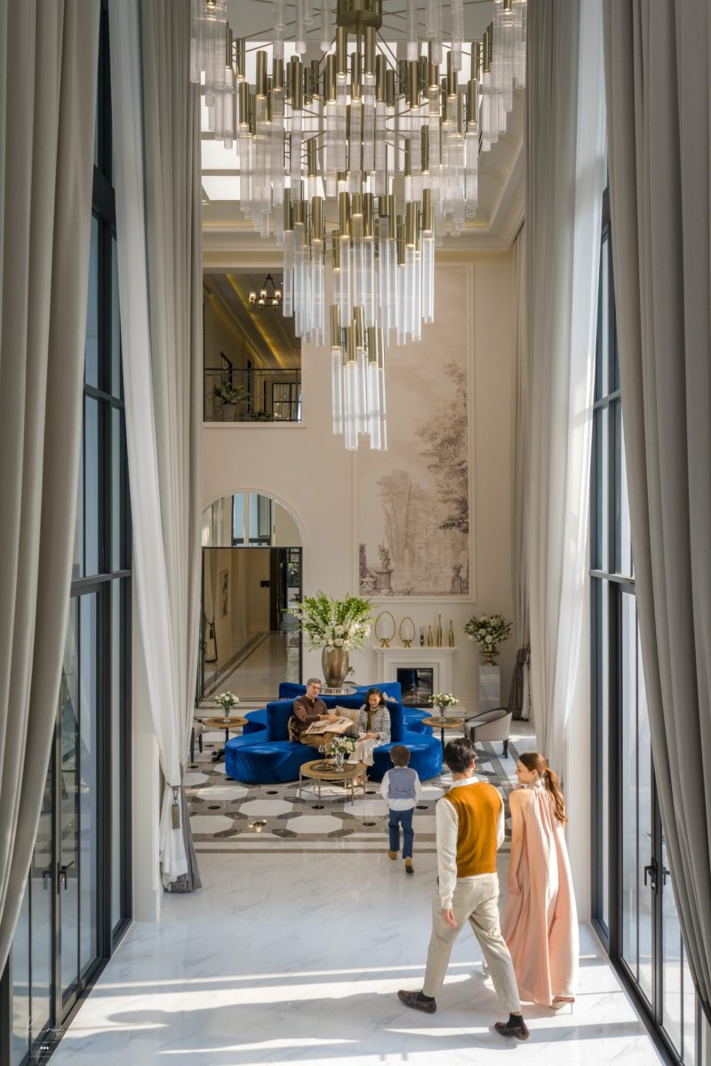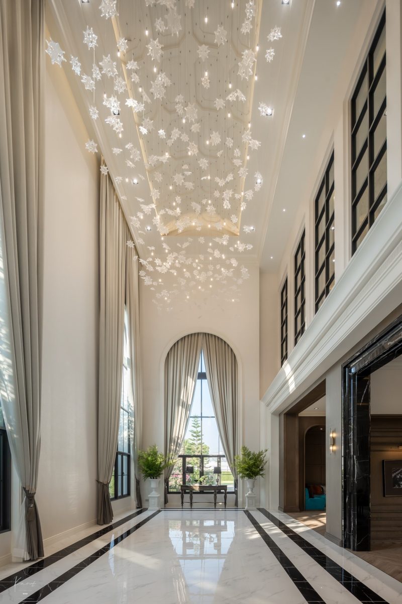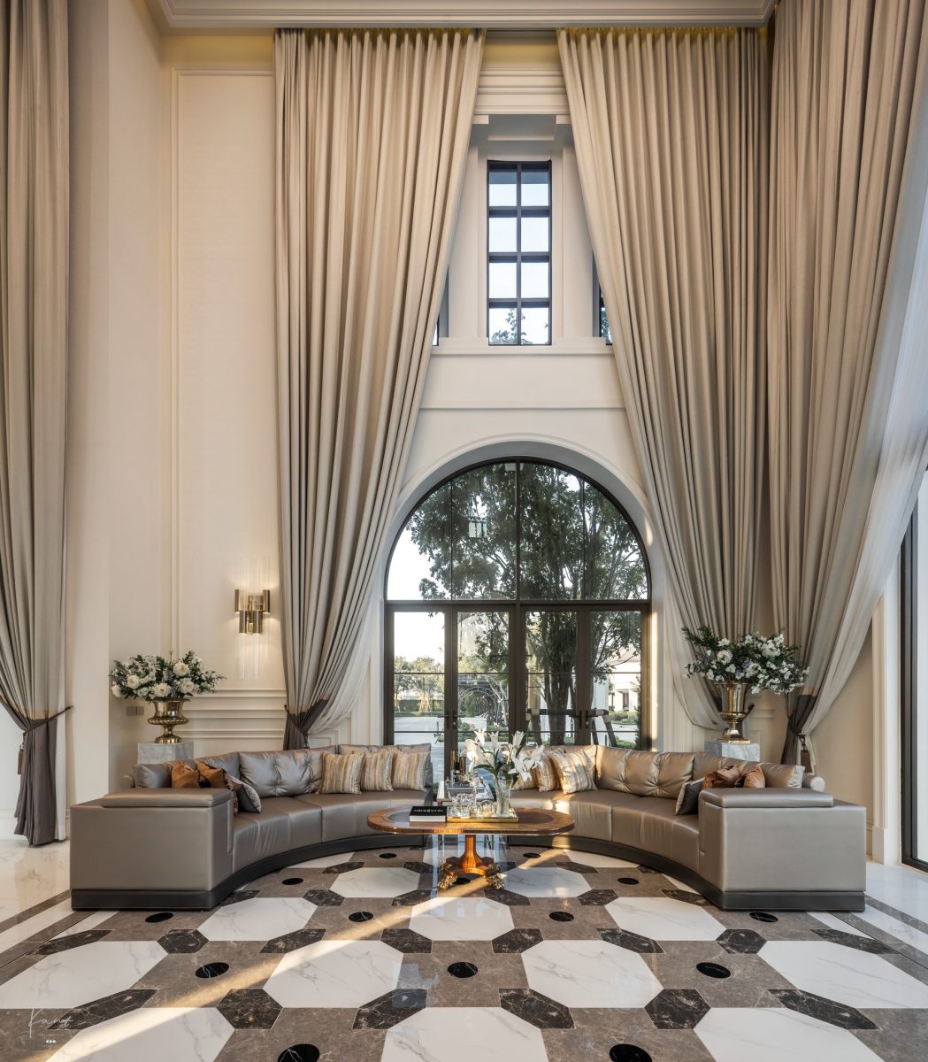 เมื่อเปิดประตูเข้าบ้านมาจะพบกับ Foyer โดดเด่นด้วยเพดานสูงที่ให้ความโอ่อ่าและความเป็นส่วนตัว เชื่อมต่อโดยตรงไปยัง Grand Living Court พื้นที่สังสรรค์ที่ออกแบบมาให้ปรับเปลี่ยนได้ตามบทบาท ไม่ว่าจะต้อนรับแขกคณะใหญ่หรือเป็นพื้นที่ครอบครัวในวันธรรมดา
