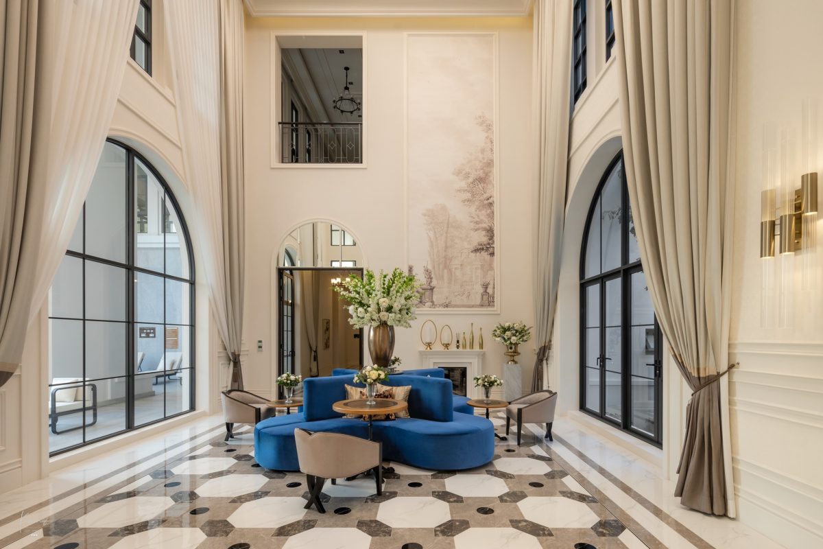 ถ้ามองในมุมของการออกแบบพื้นที่ โครงการได้ถ่ายทอดผ่าน 3 คีย์เวิร์ดหลัก คือ Grandeur ที่เน้นความโอ่อ่าอลังการ, Symmetry การจัดวางสัดส่วนทุกอย่างให้สมมาตรกัน และ Opulence ที่สะท้อนความหรูหราวิจิตร