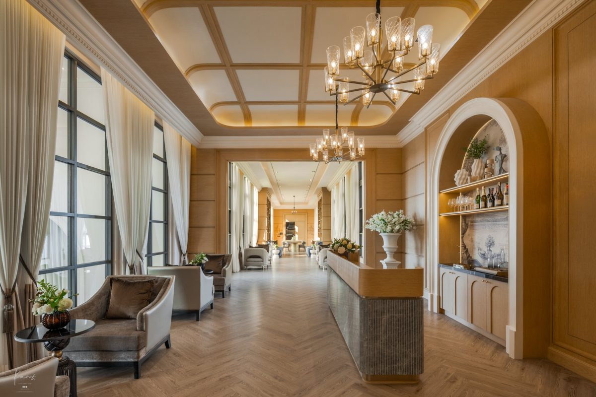 ทันทีที่เข้าสู่ตัวอาคาร ความรู้สึกแรกที่สัมผัสได้คือความโอ่อ่าในแบบคลาสสิกยุโรป โถงต้อนรับเพดานสูงโปร่งช่วยสร้างมิติของพื้นที่ให้ดูยิ่งใหญ่แต่ยังคงความนุ่มนวลของบรรยากาศ ช่องเปิดขนาดใหญ่ดึงแสงธรรมชาติให้ไหลเข้ามาอย่างนุ่มนวล สร้างความรู้สึกผ่อนคลายและเชื่อมต่อกับสวนภายนอกตั้งแต่ก้าวแรกที่มาถึง พื้นที่แรกที่เราจะพบเมื่อก้าวเข้าสู่ Palace of Winter คือ The Twin Chamber โถงต้อนรับที่เพดานสูงถึง 9 เมตร!!