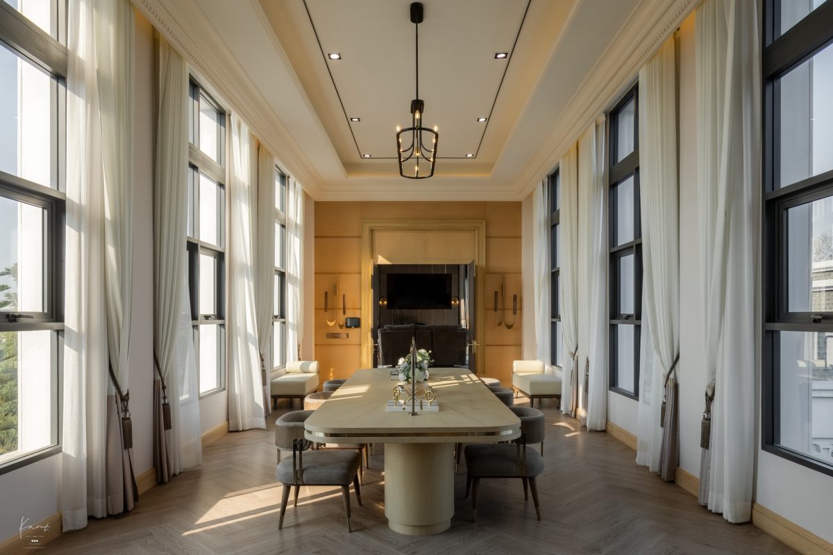 ปกติเราเห็นบ้านหรูหลายหลังที่มีโต๊ะอาหารสวยๆ นะครับ แต่จะมีสักกี่ที่ที่พื้นที่ตรงนี้กลายเป็นหัวใจของบ้านได้อย่างแท้จริง สำหรับ Grand Living Court ของที่นี่ กานต์สัมผัสได้ถึงความรู้สึกแบบนั้นตั้งแต่วินาทีแรกที่เดินเข้ามาเลยครับ