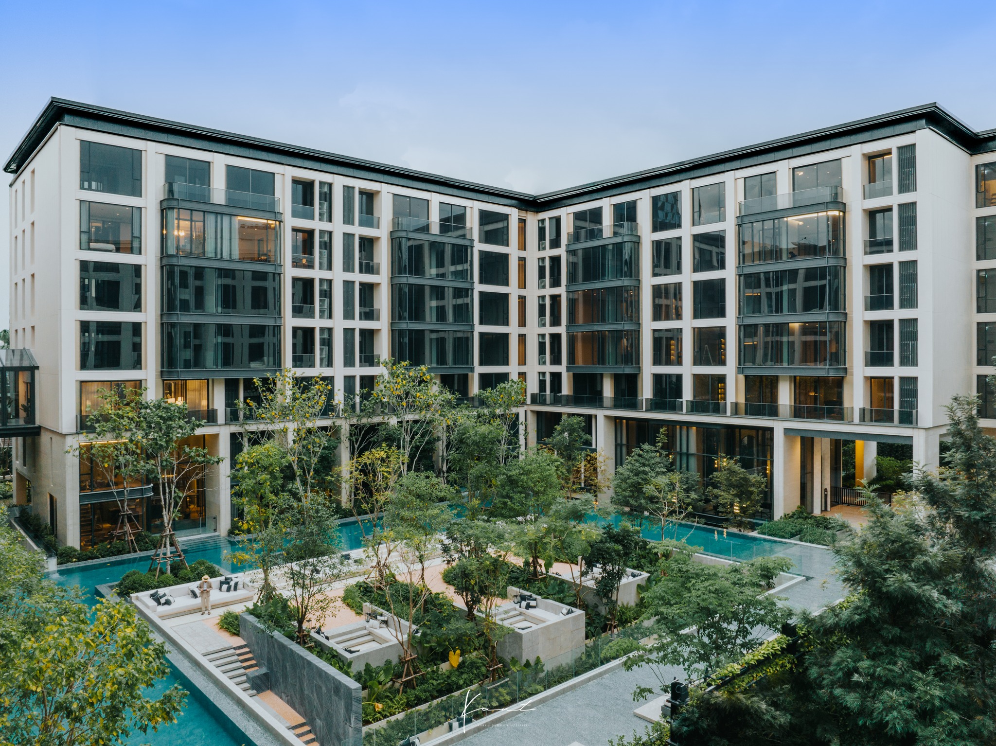 Nature is the New Luxury ภายในโครงการเต็มไปด้วยต้นไม้สีเขียวที่แทรกตัวอยู่ทั่วอาณาบริเวณ โดดเด่นด้วยอาคารสีเบจตัดกับโครงเหล็กสีดำในสไตล์ Modern Classic Luxury สะท้อนภาพความหรูหราออกมาได้อย่างสมบูรณ์แบบ