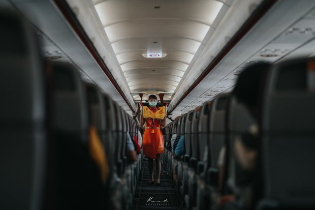ลูกเรือสายการบินไทยสมายล์จะมีการป้องกันตนเองตามระเบียบครับ ทั้งถูกมือ หน้ากาก เฟสชิลด์ สร้างความมั่นใจให้กับผู้โดยสาร นอกจากนี้ ไทยสมายล์ ยังเป็นสายการบินเดียวที่ผมเคยขึ้นแล้วเห็นว่ามีการแจกเจลล้างมือก่อนขึ้นเครื่องให้กับผู้โดยสาร