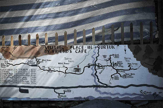 แผนผังท่องเที่ยวภายในหมู่บ้านครับ ที่นี่มีร้านอาหารอยู่ 3-4 ร้าน บริการอาหารอินเดีย และอาหารจีน (รสชาติอินเดีย) ให้ทานครับ แนะนำว่าพกอาหารกลางวันจากที่โรงแรมมาทานจะดีกว่า