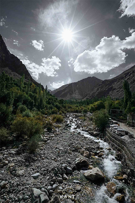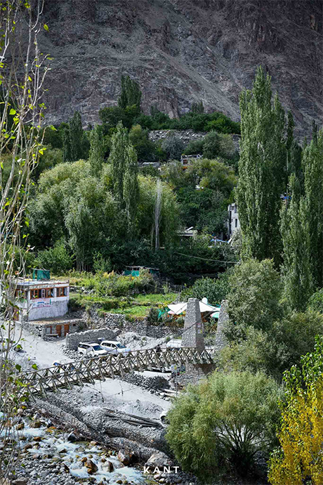 คนที่นี่ไม่มีเค้าของการเป็นคนอินเดียเลย เพราะส่วนใหญ่ญาติพี่น้องของเค้าก็อยู่ปากี มีการติดต่อข้ามแดนกันอยู่เป็นระยะ เพราะอีกเพียงแค่ 14 กิโลเมตรจากหมู่บ้านนี้ก็จะเป็นพรมแดนปากีสถาน หมู่บ้านนี้ยังนับเป็นจุดที่ความสูงจากระดับน้ำทะเลต่ำสุดในทุกที่ทั้งหมดของทริปเลห์ ลาดัก ทำให้เราไม่รู้สึกเหนื่อยเพลียแต่อย่างใด ตรงกันข้ามเรากับตื่นตาตื่นใจกับบรรยากาศ เสียงน้ำไหล ใบไม้ที่กำลังจะเปลี่ยนจากสีเขียว เป็นสีเหลืองดูเหมือนวิวจะสวยและสดชื่นที่สุดด้วยตั้งแต่เดินทางมา