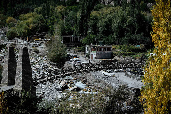 ระหว่างทางจะพบเจอกับสะพานข้ามเแม่น้ำ Shyok ทั้งแบบสะพานรถข้ามและสะพานคนข้าม เนื่องจากอีกฝั่งจะเป็นลานสังเกตการณ์ของทางเจ้าหน้าที่ทหาร ยิ่งเข้าใกล้เขตชายแดนเท่าไร ก็ไม่ค่อยจะเจอคนหรือรถทั่วไป ส่วนใหญ่เป็นรถทหารที่วิ่งร่วมอยู่บนเส้นทางเดียวกันกับเรา ซึ่งมีทั้งรถลาดตระเวน รถบรรทุกเชื้อเพลิงของทางการ รถบรรทุกขนสิ่งจำเป็นและหายากในเขตชายแดน ถึงแม้สงครามในบริเวณนี้ดูเหมือนจะสงบลงแล้ว แต่ปัญหาการก่อการร้ายตามแนวชายแดนยังเป็นสิ่งที่ต้องเฝ้าระวังเป็นพิเศษ อย่าแปลกใจหากไปแล้วจะเจอทหารเยอะมาก (ทหารห้ามถ่ายภาพนะครับ)