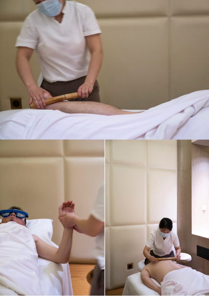 เราเลือกทรีตเมนต์ซิกเนเจอร์ของ Mi Xun Spa เป็นนวดไม้ไผ่ เทอราพิสต์ใช้ ลำไผ่ขนาดต่างๆ กลิ้งและกดจุดลงบนร่างกาย ผสานเทคนิคนวดแผนจีนเข้ากับวัสดุธรรมชาติที่เป็นสัญลักษณ์ของเสฉวน ผสานศาสตร์แพทย์แผนจีน (กดจุด ยืดเส้น) เข้ากับเทคนิคสปาตะวันตก ผ่อนคลายดีครับ