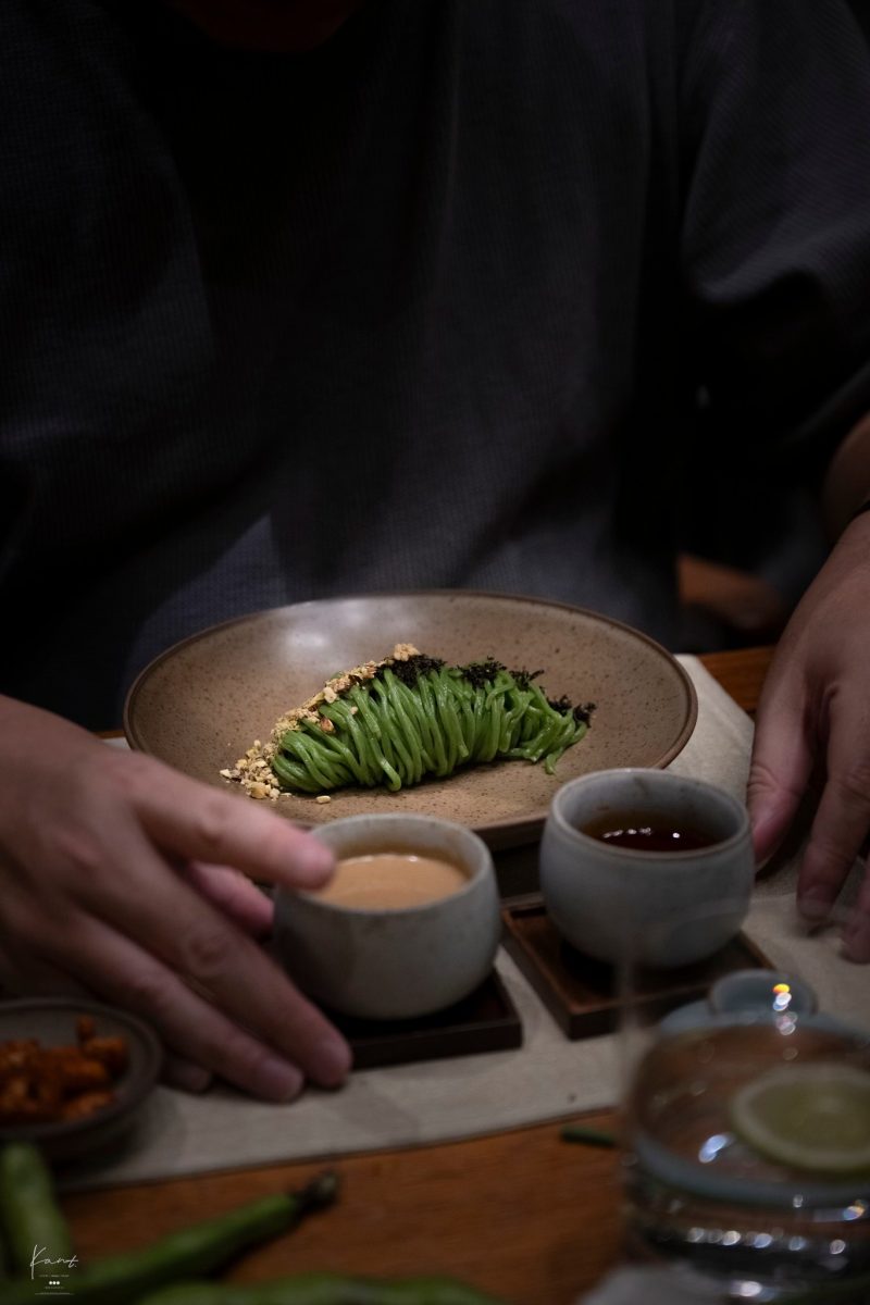 จานนี้ชอบมาก Handmade Spinach Noodles with Dandan Sauce ที่ทำให้ลืมไปเลยว่าไม่มีเนื้อสัตว์อยู่ในจานนี้แม้แต่น้อย