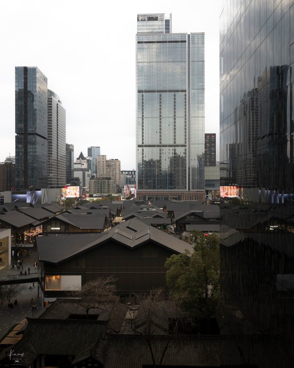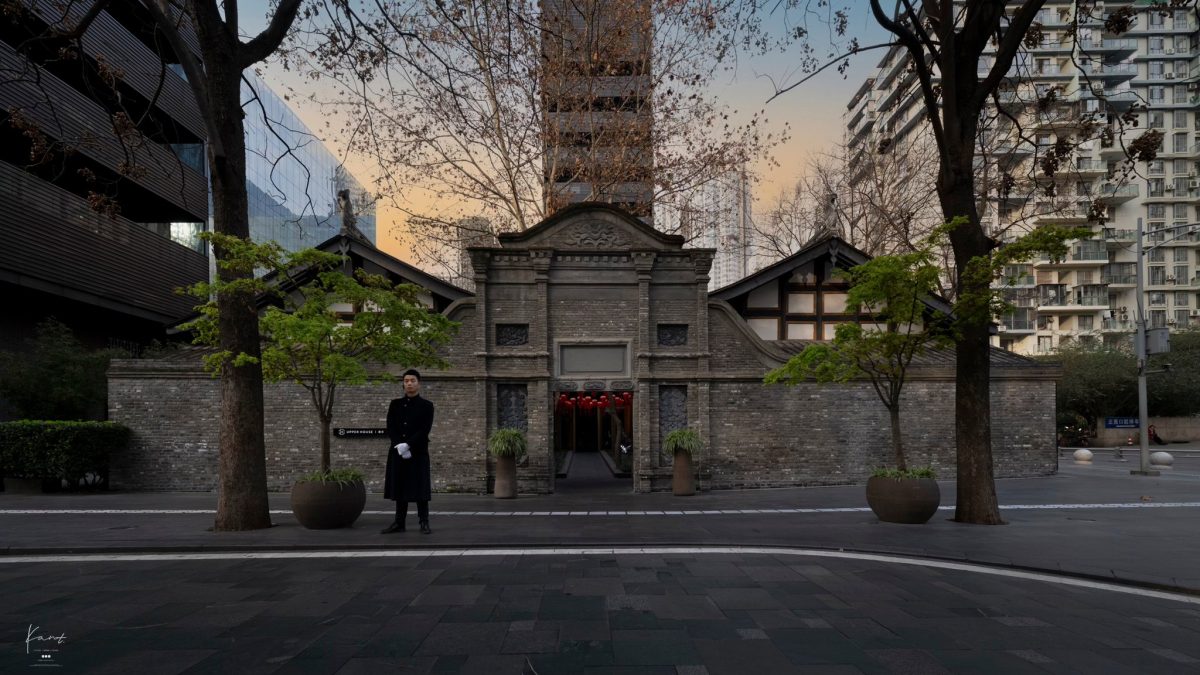 โรงแรมตั้งอยู่ใจกลางย่าน Taikoo Li เขต Jinjiang ห่างจากวัด Daci Temple ที่มีอายุกว่า 1,600 ปี เพียงไม่กี่ก้าว เราเดินผ่านแนวรั้วไม้เขียวขจีเข้าสู่ อาคาร Bitieshi ซึ่งเป็นสถาปัตยกรรมบ้านลานกลาง (สี่เหอหยวน) จากยุคราชวงศ์ชิงที่ได้รับการบูรณะอย่างประณีต