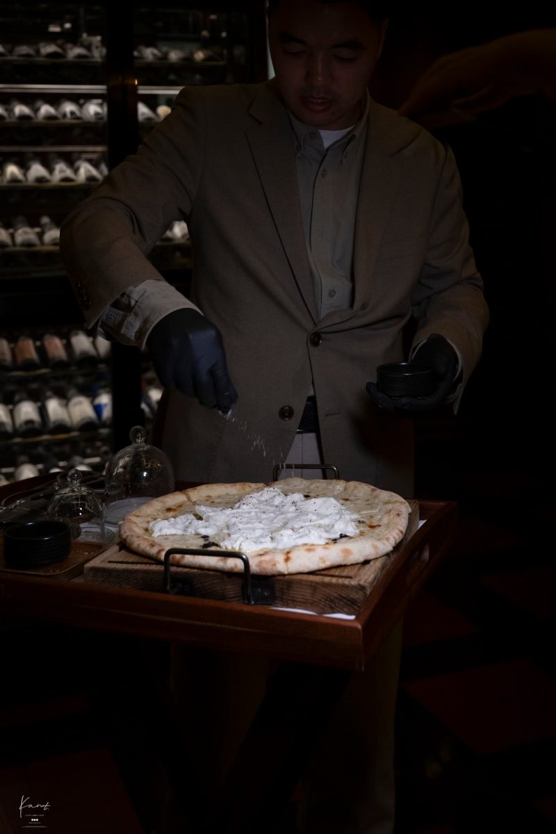 พิซซ่าสไตล์อิตาเลี่ยนชีสสดๆ ทำกันตรงหน้าเลยครับ
